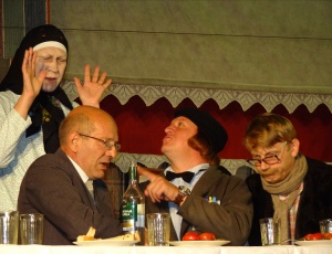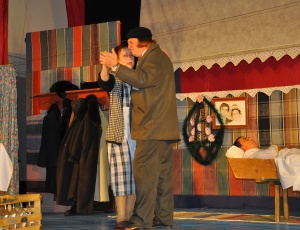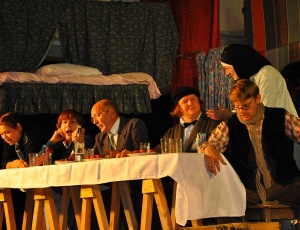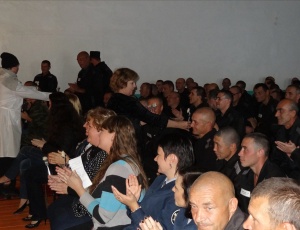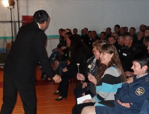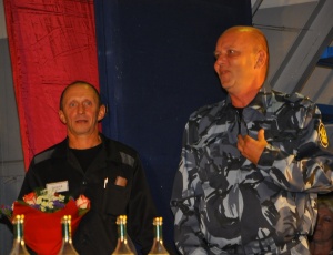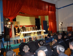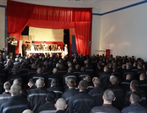 «Шутки в глухомани»500 осужденных, отбывающих наказание в ИК-8, побывали на спектакле. Артисты Новосибирского государственного драматического театра под руководством Сергея Афанасьева посетили исправительную колонию №8 с благотворительной акцией. На сцене клуба они представили спектакль — комедию «Шутки в Глухомани» по пьесе Игоря Муренко. Выступление артистов в колонии строгого режима прошло в рамках проекта акции — милосердия «Давайте улыбнемся!», автором и руководителем которого является Наталья Пендюрина — член общественного Совета при ГУФСИН России по Новосибирской области. В исправительных учреждениях эта акция проходит с 2008 года и включает в себя культурно-просветительские мероприятия. Подобные мероприятия проходят для того, чтобы поддержать тех людей, которые находятся в изоляции от общества. Хорошо, что есть творческие люди, которые откликаются на предложения выступить в исправительных учреждениях. Артисты театра под руководством Сергея Афанасьева в стенах режимного учреждения оказались впервые. И свой 27-й театральный сезон театр открыл сегодня в стенах ИК-8, — прокомментировала Наталья Пендюрина. Спектакль Игоря Муренко «Шутки в глухомани» в Театре Афанасьева ставят уже много лет. Действие происходит в сибирской глубинке, где по недоразумению затеваются похороны мужика Саньки. Проводить его в последний путь съезжается вся родня. Сам Санька решает исполнить отведенную ему в похоронах роль, а заодно посмотреть, как к нему на самом деле относятся в деревне. Начавшийся на невеселой ноте спектакль превращается в комедию положений. — Театр в наше учреждение приехал впервые. Для нас это фурор! Мне очень понравился спектакль! У меня такое ощущение, что я сейчас не на службе, а действительно пришел в театр, — говорит заместитель начальника ИК-8 ГУФСИН России по Новосибирской области Николай Серов. Когда спектакль закончился, а актеры поклонились зрителям, зал еще долго не отпускал их со сцены – осужденным и сотрудникам учреждения настолько понравился спектакль, что все аплодировали стоя. Врио заместителя начальника ГУФСИН России по Новосибирской области Олег Тишечко поблагодарил актеров за талантливую игру и неравнодушие, выразив надежду на дальнейшее сотрудничество. От имени руководства ГУФСИН России по Новосибирской области он вручил актерам благодарственные письма и картину с изображением здания театра Афанасьева, написанную осужденными.