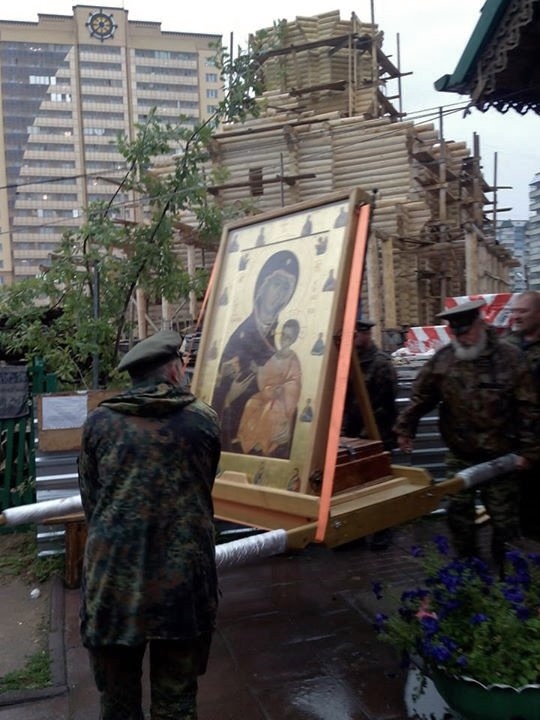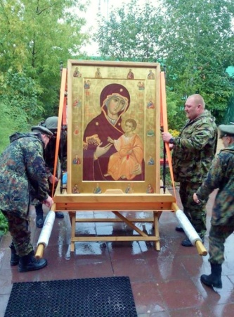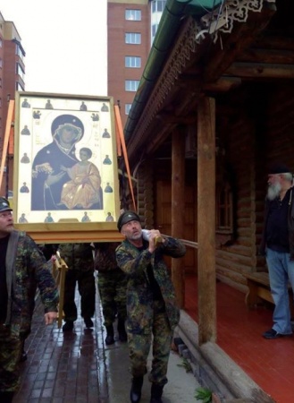 Табынский Крестный ход посетил НовосибирскПравославный крестный ход с Табынской иконой Божьей Матери проводится казаками Оренбургского казачьего войска по благословению Святейшего Патриарха Московского и всея Руси Кирилла, председателя Синодального комитета по взаимодействию с казачеством Московской Патриархии Русской Православной Церкви митрополита Ставропольского и Невинномысского Кирилла, а также правящих архиереев епархий, по территории которых проводится Крестный ход. В Крестном ходе участвует полноразмерный чудотворный список Табынской иконы Божьей Матери (походная икона оренбургских казаков). Крестный ход проводится ежегодно в период с 9-й пятницы по Пасхе (день явления иконы) до Пасхи следующего года. В этом году казаки-оренбуржцы совершают Крестный ход из Пскова до Владивостока. Они везут на обычной "Газели" со сдвоенной кабиной иконы Божией Матери "Табынская" и "Иверская", побывавшие сперва, по благословению старца Рафаила Берестова, на Афоне. Икона "Табынская" из-за вынужденных задержек в пути, отправлена на Восток самолетом, а в наш город доставлена икона "Иверская" и мощевик с мощами множества святых: вмч. Георгия Победоносца, вмч. Пантелеимона, благ.вел.кн.Александра Невского, вмч. Димитрия Солунского, прав. Симеона Верхотурского и многих иных. 11 сентября, после Литургии, перед иконой «Иверская» был отслужен акафист, и теперь Крестных ход продолжит свой путь на Восток.