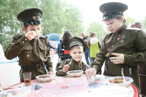 — Неси сюда всю гречку, — командует главная по кухне казачка в нарядном костюме и сосредоточенно вслух считает, сколько уже насыпала крупы. Когда каша была готова, всех желающих пригласили к столу. Кроме того, новосибирцы посетили мастер-классы по кузнечному делу и конной выездке. Ждали горожан и молодецкие забавы, и различные конкурсы с вручением призов. Наталья НАШТАЛОВА