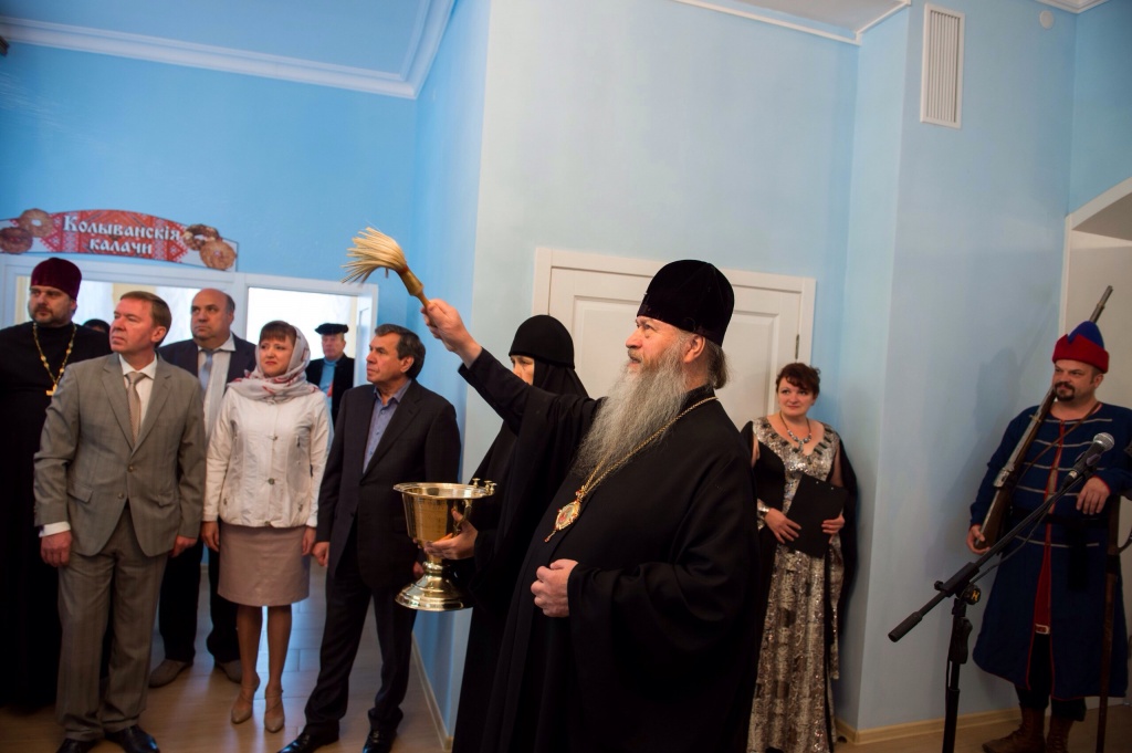 После освящения дома купца Жернакова почетные гости осмотрели экспозиции первого и второго этажей музея, а также, по старой колыванской традиции, угостились чаем с калачами.