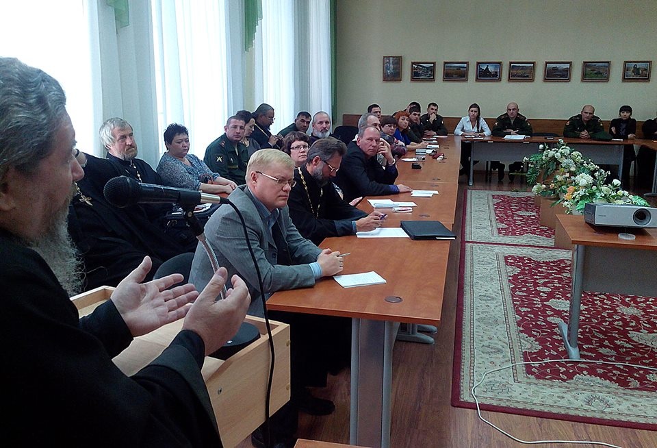 2) ознакомление участников с учебным курсом «Духовные основы воинского служения», с методами работы и методическими материалами по работе с военнослужащими, сотрудниками МВД, членами казачьи обществ, воспитанниками ВПК; раздача методических материалов;
