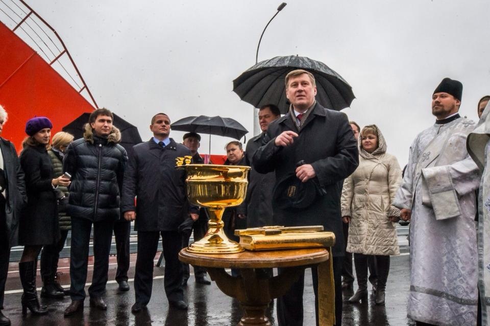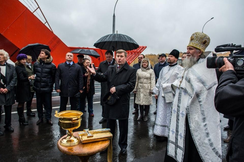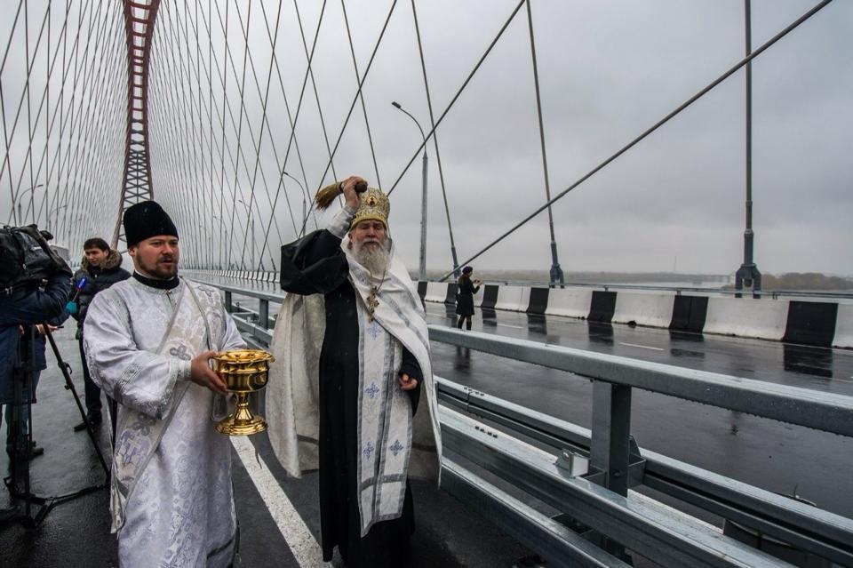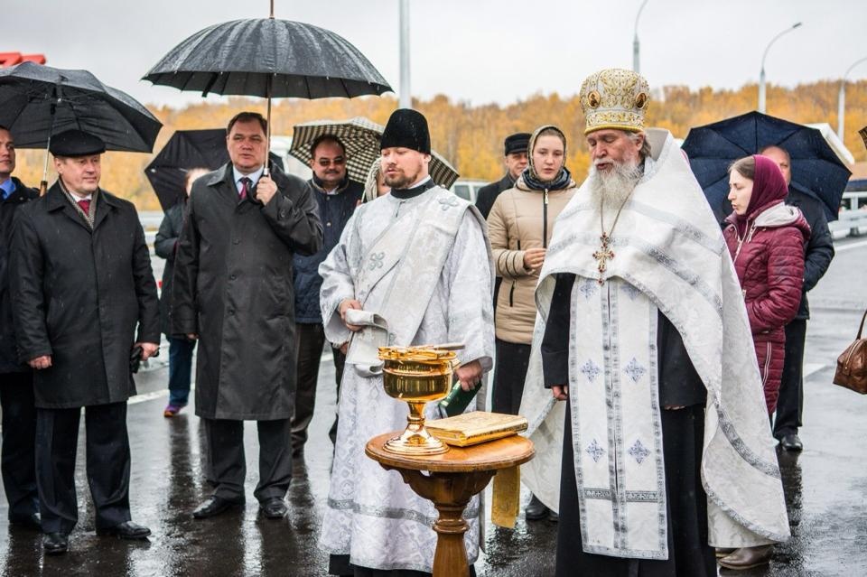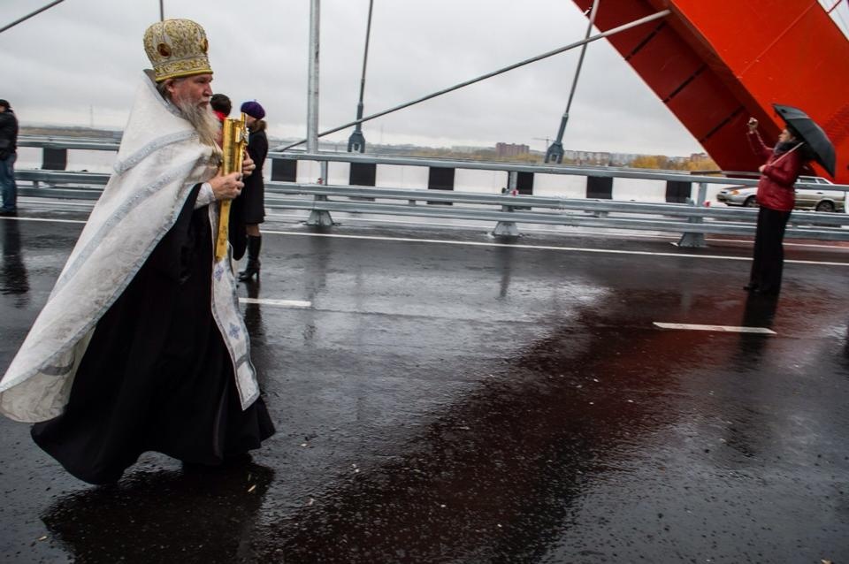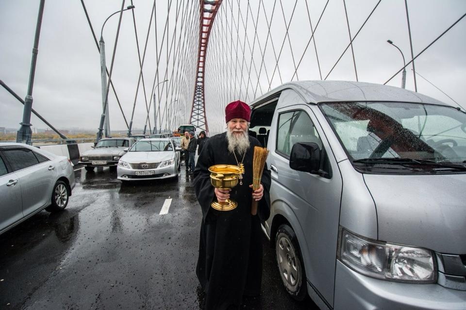 Освящён Бугринский мостПо благословению Митрополита Новосибирского и Бердского Тихона освящение совершил помощник Управляющего Новосибирской Епархией протоиерей Александр Реморов. На освящении присутствовал мэр Новосибирска Анатолий Локоть, который поблагодарил отца Александра за совершение обряда и напомнил, что официальное открытие моста состоится 8 октября. В связи с этим в городе пройдут праздничные торжества, а движение транспорта по новому мосту откроет колонна