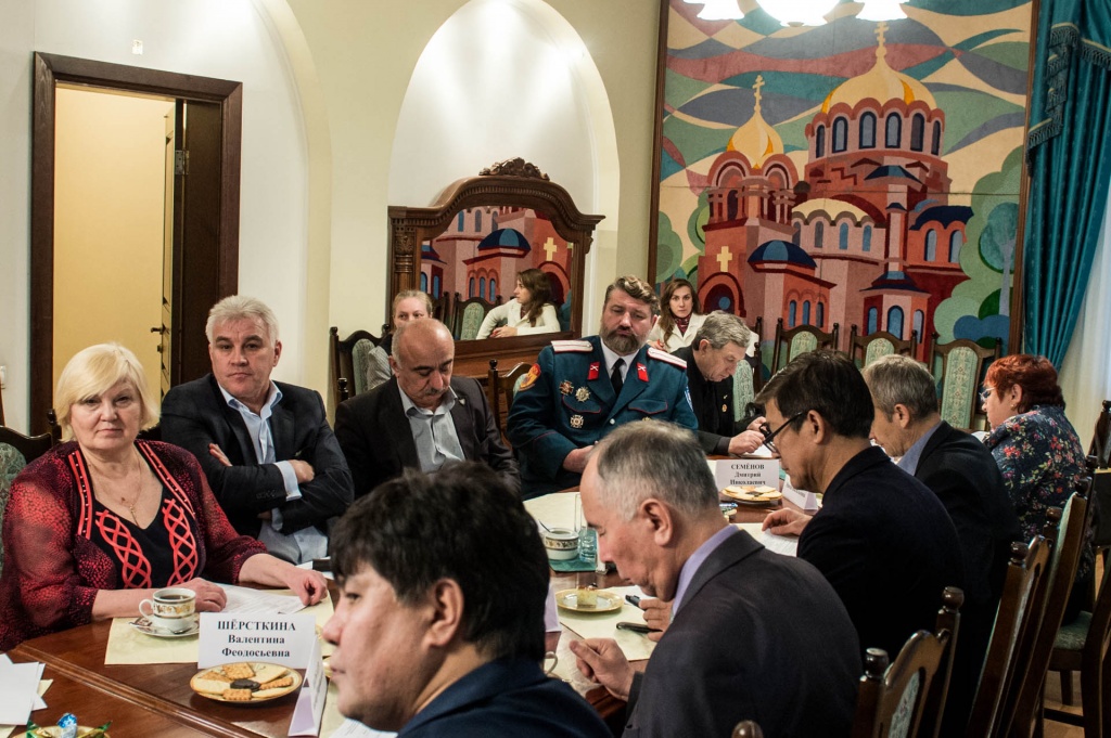 Союз за национальное единство общества31 октября 2014 года, в преддверии праздника – Дня народного единства – по инициативе Новосибирской региональной общественной организации «Всемирный Русский Народный Собор» в официальной резиденции Новосибирской Митрополии Русской Православной Церкви состоялась встреча руководителей ряда национальных общественных организаций и национально-культурных автономий города Новосибирска и Новосибирской области. Во встрече, прошедшей под председательством Председателя НРОО «ВРНС» Владыки Тихона, Митрополита Новосибирского и Бердского, приняла участие Уполномоченный по правам человека в Новосибирской области Нина Николаевна Шалабаева. В ходе встречи были обсуждены вопросы: взаимодействия НРОО «ВРНС» и национальных общественных организаций и национально-культурных автономий; организации и проведения совместных праздников и мероприятий, в том числе связанных с вопросами защиты нравственных идеалов и противодействию попыткам разжигания конфликтов на межнациональной и межрелигиозной почве; адаптации трудовых мигрантов. В связи с тем, что мае 2015 года будет отмечаться семидесятилетие победы в Великой Отечественной войне, на фронтах которой плечом к плечу сражались представители практически всех национальностей, проживавших на территории Советского Союза, было принято решение о том, что в период работы Поезда Памяти «За духовное возрождение России» национальные творческие коллективы примут участие в галла-концертах в районных Домах культуры, которые посетит социально-культурный просветительский Поезд. Необходимо отметить, что руководители национальных общественных организаций и национально-культурных автономий приняли самое активное участие в обсуждении предложенных вопросов, затрагивающих интересы общества, высказали большую благодарность представительству Собора за инициативу проведения такой встречи и предложили сделать такие встречи регулярными не реже одного раза в два месяца. В результате обсуждения вопросов, касающихся воспитания молодежи и подрастающего поколения и утверждения нравственности в обществе, участники встречи единогласно поддержали предложение представительства Собора о создании Рабочей группы при НРОО «ВРНС» по вопросам нравственности и содействия национальному единству общества, предложив избрать Председателем этой Рабочей группы, в которую войдут руководители всех национальных общественных организаций и национально-культурных автономий, митрополита Тихона. Участвовавшая во встрече Уполномоченный по правам человека в Новосибирской области Нина Николаевна Шалабаева высоко оценила инициативу НРОО «Всемирный Русский Народный Собор» по проведению такой встречи, высказала намерение о сотрудничестве аппарата Уполномоченного по правам человека по решению всех вопросов, обсужденных на встрече. Кроме того, Н.Н. Шалабаева предложила руководителям национальных общественных организаций и национально-культурных автономий принять активное участие в деятельности Экспертного совета при Уполномоченном по правам человека в Новосибирской области.