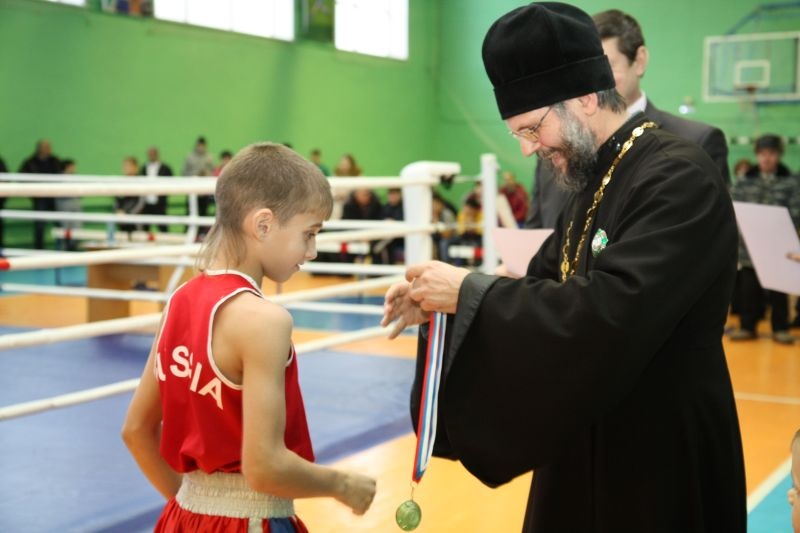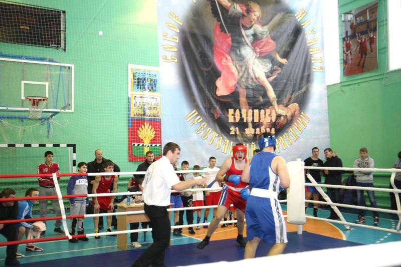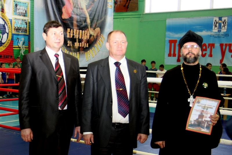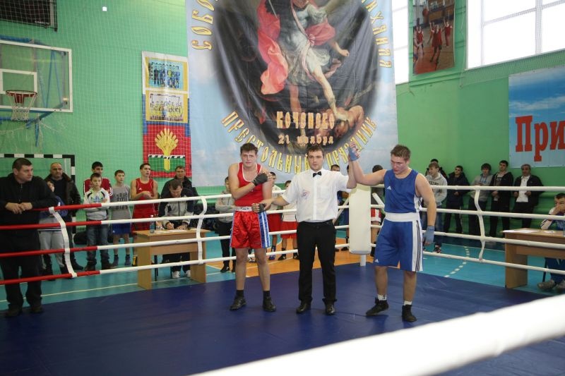 В день памяти Архистратига Божиего Михаила коченевский храм особенно наполняется молящимися: местные жители приходят семьями, чтобы помолиться своему небесному покровителю. Архангел Михаил покровительствует всем: и воинам, и педагогам, и учащимся, и врачам, и путешествующим, и болящим — всем! В том числе и спортсменам, вдохновляя их на победу. Именно поэтому в этот день в храме всегда можно увидеть подтянутых, крепких мальчишек. Это боксеры, которые вот уже четвертый год подряд 21 ноября съезжаются в Коченево из Новосибирска и Новосибирской области, из Томска, Барнаула на ставший уже традиционным междугородний турнир по боксу, посвященный Архистратигу Михаилу. Они приходят сюда помолиться военачальнику небесных сил, чтобы он сподвигих на честный спортивный поединок и уберег от возможных травм. Богослужение завершилось Крестным ходом вокруг Михаило-Архангельского храма и праздничным молебном. «Для нас с вами это великий день, — обратился к христианам настоятелем храма протоиерей Тимофей Морев. — Мы празднуем память Архистратига, нашего небесного покровителя, усердного ходатая за нас пред Господом. Его имя Михаил, или «Кто как Бог?» в том смысле, что никто не может быть равен Богу. Этим возгласом, заставившим содрогнуться небеса, Архистратиг Божий призвал небесное воинство на свержение обезумевшего в своей гордости Денницы, возомнившего себя равным Творцу». Священник сказал, что Архангел Михаил олицетворяет собой победу над силами зла. «Мы должны всегда брать пример с нашего небесного покровителя, стараться быть такими же отважными воинами, каким является Архангел Михаил, совершать благородные поступки, быть честными перед собой и людьми». По словам священника, рано или поздно перед каждым человеком встает выбор, от которого зависит вся его дальнейшая жизнь. Это торжественный и одновременно страшный, судьбоносный момент, потому что в этот миг вся злоба мира восстает против людей, чтобы заставить их сделать неверный шаг, сбить их с истинного пути, сказать неверное слово. А чтобы этого не произошло, нужно всегда помнить о Боге, не малодушествовать, не страшиться, ибо Господь не любит боязливых. А чтобы враг не застал врасплох, следует трудиться, трудиться над своей душой, трудится бесконечно, презирая леность и уповая на молитвенную помощь святых, молитвенную помощь Архистратига Михаила. Ибо что невозможно человеку, возможно Богу. Трудиться!.. И в храме во время проповеди, и в своем приветственном слове на открытии 4-го междугороднего турнира по боксу, собравшего порядка 140 спортсменов, священник говорил именно об этом. Душа должна трудиться. И чем бы человек ни занимался, он обязан отдавать себе отчет в своих делах и поступках: ради чего он это делает? Ради земных наград и почестей или ради Правды? Говоря о спорте и спортивных достижениях в частности, отец Тимофей всегда подчеркивает, что спорт, укрепляя мышцы и развивая реакцию, еще и закаляет дух. Слабых духом спортсменов, тем более боксеров, не бывает. Не зря говорят, что когда мальчишка первый раз переступает канаты, он уже становится победителем, он побеждает собственные страх, неуверенность, и на тот момент это его главная победа. Этот дух нужно постараться не растерять, но укреплять его, ибо вообще все победы, которые совершает человек на протяжении своей жизни, он сов