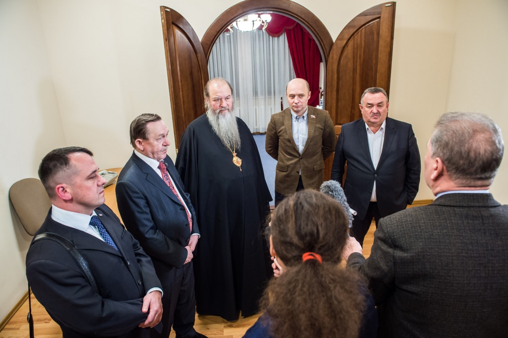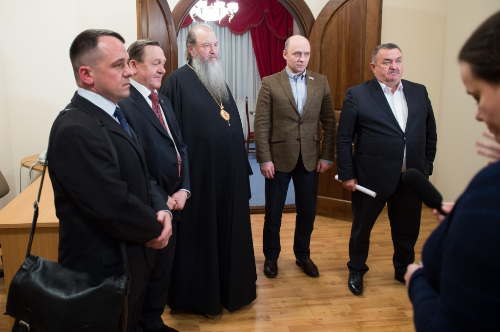 Обращаясь к гостям, Владыка Тихон высказался о необходимости объединения усилий по духовно-нравственному и патриотическому воспитанию подрастающего поколения, преодоления разобщенности общества по политическим мотивам. Кроме того, Председатель НРОО «Всемирный Русский Народный Собор» призвал региональных лидеров политических партий к совместной консолидированной работе на благо российского общества и государства, именно к тому, к чему в своем ежегодном Послании к Федеральному собранию РФ призвал представителей всех политических партий и общественных сил Президент России В.В. Путин. Необходимо отметить, что предложения Председателя НРОО «ВРНС» Митрополита Тихона были полностью поддержаны. Валерий Ильенко, Анатолий Кубанов и Евгений Лебедев высказали свои предложения по совместной деятельности с отделением Собора, принятые всеми участниками встречи. Кроме того, Валерий Ильенко и Анатолий Кубанов предложили сделать такие встречи регулярными, в том числе и в расширенном составе, с приглашением представителей депутатского корпуса всех уровней, руководителей органов законодательной и исполнительной власти, и глав администраций муниципальных образований области.