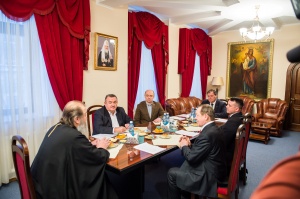 Согласие на совместную консолидированную работу5 декабря 2014 года, по инициативе Новосибирской региональной общественной организации «Всемирный Русский Народный Собор», в Официальной резиденции Новосибирской Митрополии Русской Православной Церкви, состоялась встреча с региональными руководителями ведущих парламентских партий – «Единая Россия», КПРФ, «Справедливая Россия» и ЛДПР. Во встрече, прошедшей под председательством Председателя Новосибирской региональной общественной организации «Всемирный Русский Народный Собор» Митрополита Тихона, приняли участие: Ильенко Валерий Павлович – Секретарь Новосибирского Регионального отделения партии «Единая Россия»; Карпов Владимир Яковлевич – Секретарь Новосибирского обкома Коммунистической партии Российской Федерации; Кубанов Анатолий Анатольевич – Председатель Совета регионального отделения политической партии «Справедливая Россия»; Лебедев Евгений Владимирович – Координатор Новосибирского регионального отделения Либерально-демократи-ческой партии России, а также Красов Александр Витальевич – Руководитель секретариата НРОО «ВРНС».