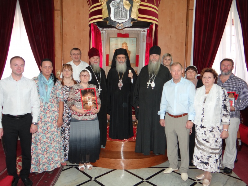 Новосибирские паломники на Святой ЗемлеС 15 по 25 октября 2014 года, по благословению Митрополита Новосибирского и Бердского Тихона и во главе с Его Высокопреосвященством, состоялась паломническая поездка на Святую Землю. В состав группы вошли священнослужители и прихожане храмов Новосибирской Митрополии. За время паломнической поездки новосибирцы посетили многие Святые места Израиля: старый город Иерусалим, Крестный путь Спасителя на Голгофу, Преторию, Храм Гроба Господня, Гробницу Божией Матери, пещеру Рождества Христова, Горненский монастырь, побывали на горе Фавор, горе Блаженств и многих других святых местах. В ходе паломнической поездки состоялся прием делегации паломников Новосибирской Митрополии у Патриарха Святого Града и всея Палестины Феофила III. Блаженнейший Патриарх Иерусалимский тепло и радостно встречал паломников из далекой Сибири. Митрополит Новосибирский и Бердский Тихон, в знак глубокой благодарности и признательности, подарил Его Блаженству икону Божией Матери «Феодоровская».