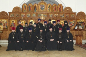 Епархиальное собрание духовенства Каинской епархии25 декабря 2014 года в здании епархиального управления Каинской епархии под председательством правящего архиерея Преосвященнейшего Феодосия, епископа Каинского и Барабинского состоялось ежегодное собрание духовенства епархии. Епархиальное собрание было ознаменовано празднованием 700-летия со дня рождения преподобного Сергия Радонежского. В ходе собрания были подведены итоги уходящего 2014 года. Владыка напомнил особую важность миссионерской деятельности на приходах. Руководитель епархиального отдела озвучил статистические данные по посещению сел в районах епархии. В благочиниях будут назначены помощники ответственные за миссию.