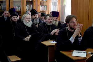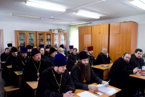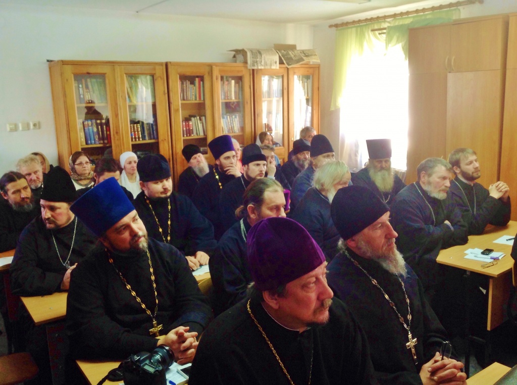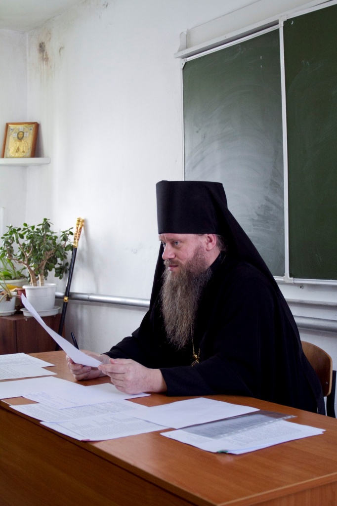 Со вступительным словом к собравшимся обратился Преосвященный Лука, епископ Искитимский и Черепановский. Начало своего выступления он посвятил ситуации в России и мире: «ХХ век был трагическим для нашего народа. В начале атеистические гонения, потом, после развала СССР, мы попали в колониальную зависимость. Теперь Запад объявил войну нашей стране. Это уже не экономическая и идеологическая война, а настоящая кровавая война идёт на наших границах, на Востоке Украины. Большой урон нашему народу так же наносят безграмотные учебники истории и псевдокультура, приносимая через западных артистов и шоуменов». В связи с этим необходимо «большее внимание уделить вопросам преподавания в школе основ православной культуры, взаимодействию с властями по вопросам нравственного воспитания детей и молодежи. В Искитимской епархии началось формирование отделения Всемирного Русского Народного Собора». 28 декабря исполнилось три года со дня определения Священного Синода об открытии Искитимской епархии. Епископ Лука поблагодарил всех клириков за труды по становлению епархии. На конец 2014 года в Искитимской епархии трудятся 43 священнослужителя. Из них - 14 иеромонаха, 2 иеродиакона, 2 диакона,2 заштатных священнослужителя и 2 сверхштатных. На данный момент в епархии действует 56 приходских общин, из них 25 самостоятельных приходов, в 44 храмах и молитвенных домах имеется престол для совершения Божественной литургии. В этом году 7 приходов прошли перерегистрацию, ещё 7 в процессе. В 2014 году открыто 2 новых молитвенных дома: в деревне Пойменное Тогучинского района и в деревне Бердь Искитимского района. Были подведены статистические итоги архиерейского служения за 2014 год — совершенно 241 богослужение, из них 92 Божественные литургии, 78 раз посещались приходы епархии, где были совершены 24 литургии; было освящено 6 поклонных крестов, Владыка принял участие в 12 крестных ходах. В этом году стали чаще посещаться населённые пункты, в которых ещё нет приходов, для знакомства с администрацией и верующими. Проходили встречи с преподавателями школ, Владыка принял активное участие в образовательных чтениях и конференциях. Далее разговор пошёл о приходского жизни. Владыка призвал активней работать с новообразованными общинами и активизировать деятельность прихожан, улучшить катехизаторскую работу крещаемыми, брачующимися. Уделить внимание каждому приходящему в храм, с любовью и терпением. Для совместного участия всех прихожан в богослужении петь всем храмом основные песнопения. Об этом, в частности, говорил Предстоятель Русской Православной Церкви: «Народное пение под управлением диакона, которое сегодня чаще всего сводится к общему пению за литургией «Символа веры» и молитвы Господней, можно было бы распространить и на ряд других любимых прихожанами песнопений, в том числе и за Всенощным бдением. Должна быть совместная деятельность всех прихожан и после богослужения. Богослужебное молитвенное общение должно получать продолжение во внебогослужебной жизни прихода». В следующем году нас ждут две важные даты, которым необходимо уделить особое внимание: 1000-летие кончины святого равноапостольного князя Владимира, 70-летие победы в Великой Отечественной войне. В своём выступлении главный бухгалтер епархии Ольга Владимировна Берлова рассказала о материа