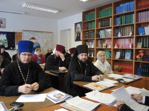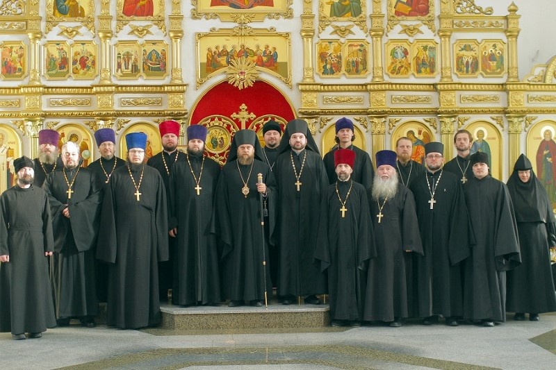 Годовое Епархиальное собрание Карасукской епархии20 декабря в здании Епархиального управления г. Карасука состоялось ежегодное Епархиальное собрание духовенства Карасукской епархии. С приветственным словом и докладом к духовенству обратился Его Преосвященство епископ Филипп, в своем докладе он подвел итоги церковной жизни за 2014 год, а также напомнил, что главным моментом уходящего года является празднование 700-летия со дня рождения преп. Сергия Радонежского. Он также отметил, что за этот год в нашей епархии прошло множество мероприятий, были освещены 4 поклонных креста, в районах нашей епархии продолжается строительство четырех храмов. Этим летом в Ордынском районе встречали миссионерский корабль «Святой апостол Андрей Первозванный». Прошла смена православного лагеря для детей-сирот и впервые — смена военно-патриотического лагеря «Казачья застава». Традиционно состоялся крестный ход с пограничниками вдоль государственной границы России и Казахстана. Были совершены 2 диаконские и 2 иерейские хиротонии. Прошли традиционные православные выставки и Рождественские образовательные чтения в Карасуксой и Ордынской епархии. С особым торжеством был отмечен престольный праздник в Кафедральном соборе св. апостола Андрея Первозванного, на котором присутствовали Его Преосвященство епископ Феодосий, священнослужители Новосибирской и Искитимской епархий и двадцать священнослужителей других епархий. В заключение Владыка напомнил, что в 2015 г. по благословению Святейшего Патриарха Кирилла будет отмечаться празднование 1000-летия со дня преставления св. равноапостольного князя Владимира, а также 70-летие Победы в Великой Отечественной войне 1941-1945 гг. Затем к духовенству обратился секретарь Карасукской епархии иерей Игорь Непша. Он напомнил настоятелям храмов о предоставлении в срок годовых отчетов, далее выступили благочинный Центрального округа иеромонах Мелхиседек (Свистелин) и благочинный Восточного округа иерей Андрей Гусев. Бухгалтер Карасукской епархии напомнила настоятелям храмов о годовых отчетах и о правильности ведения бухгалтерского учета на приходах. В заключение Владыка поблагодарил всех священнослужителей епархии за активную работу в течение года и поздравил духовенство с наступающим Новым годом и Рождеством Христовым.