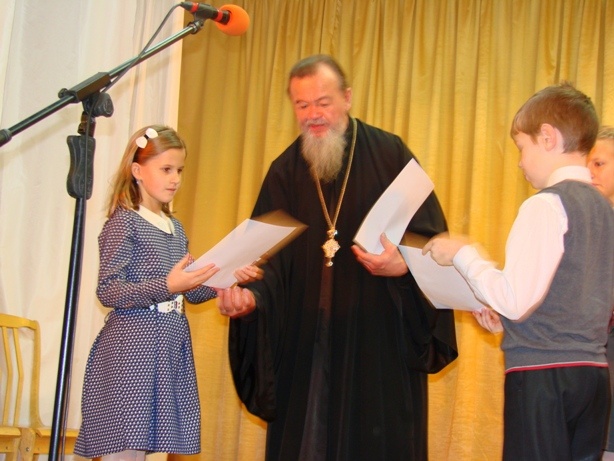 Настоятель Преображенского храма о. Василий поблагодарил детей за любовь к искусству: "С детства нужно воспитывать в детях умение служить, умение дарить теплые слова, благодарить, просить прощения, — отметил священнослужитель. — Приучать детей к труду домашнему: посуду, пол мыть, стирать. Чтобы умели готовить девочки и мальчики. Если мы все будем делать за детей, они вырастут такими неумешками. И кому будут такие нужны женихи и невесты?"
