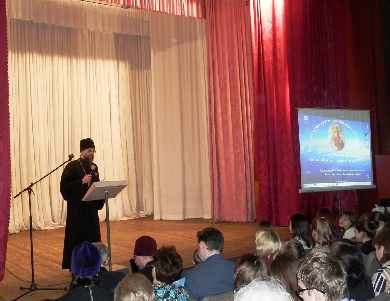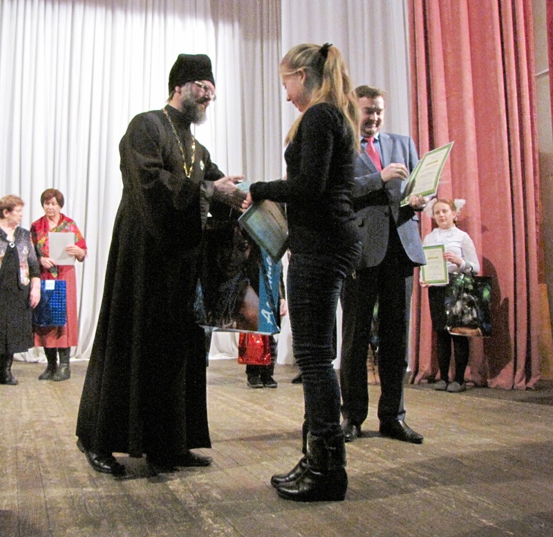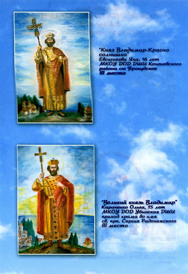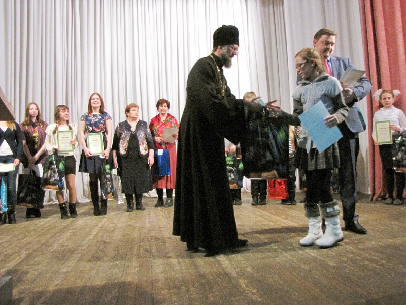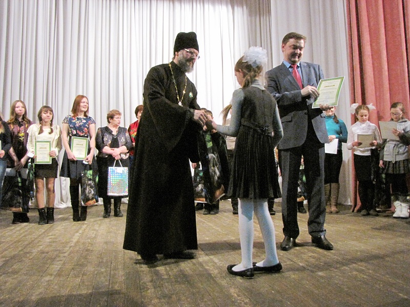 Награждение победителей Епархиального областного конкурса «Русь Святая живёт…»Жизнь в православии Верность цивилизационному выбору Крещение Руси произошло в 988 году, и это событие, значение которого трудно переоценить, связано с именем князя Владимира, которого историки назвали великим, Церковь – святым равноапостольным, а народ прозвал Владимиром Красное Солнышко. 28 июля 2015 года исполняется 1000 лет со дня преставления святого равноапостольного князя Владимира, и уже десять столетий Россия верна его цивилизационному выбору. Всегда интересно с помощью специалистов, которые глубоко изучили эту тему, как бы вернуться к самому началу христианской истории Руси, а затем ознакомиться с её современными реалиями. Вот эту возможность и предоставила прошедшая в минувшую среду, 11 февраля, районная образовательная конференция «Князь Владимир. Цивилизационный выбор Руси». Подготовленная по благословению Епископа Каинского и Барабинского Феодосия приходом храма во имя Архистратига Михаила, она состоялась на площадке Центра детского творчества «Мечта», собрав представителей – школьников и преподавателей – образовательных учреждений района, библиотекарей и других культработников. Зал был заполнен до отказа. А почётными гостями конференции можно назвать не только заместителя министра образования, науки и инновационной политики Новосибирской области Д. А. Метёлкина и начальника Управления образования администрации Коченёвского района О. А. Пучкову, но и почти тридцать из 37-и приглашённых на награждение призёров областного епархиального конкурса «Русь Святая живёт…», которые смогли приехать в р.п. Коченёво издалека. Участники конкурса, ставшие его победителями, из Краснозёрского, Татарского, Барабинского, Куйбышевского, Венгеровского, Убинского, Доволенского, Усть-Таркского, Ордынского, Искитимского районов заодно заметно расширили и географию конференции. Церемония их торжественного награждения предварила пленарную часть заседания, дипломы и памятные подарки вручали руководитель отдела образования и катехизации Каинско-Барабинской Епархии, настоятель коченёвского храма во имя Архистратига Михаила протоиерей Тимофей Морев и заместитель министра образования Дмитрий Метёлкин. А перед тем в своём приветствии к собравшимся Дмитрий Александрович сказал: «Постигать прошлое можно разными путями, в том числе и через чувства. Эту возможность нам даёт творчество… Хочу пожелать дальнейших успехов по пути духовного и интеллектуального становления, ясного понимания, какие основы в истории нашего государства являются подспорьем в трудные моменты». Хочется добавить, что Коченёвский район тоже может гордиться немалым числом призёров этого конкурса. Среди них есть взрослые участники – художница Наталья Епихина из р.п. Чик и автор стихотворного произведения Валентина Колмагорова из районного центра, а также юные художники из села Федосиха Настя Пронина, Ира Бояринова (рук. А. А. Игнатов), из села Прокудское Катя Емельянова, Катя Покакаева, Яна Евсигнеева (рук. О. И. Игнатьева, детская школа искусств), Елена Лейтан, София Латоха, Марина Самойлова (рук. И. В. Ведягина, КСОШ № 1), Настя Кожевникова (КСОШ 13), Елена Коблева (ЦДТ «Мечта»). Жюри, к слову, вновь выказало свою очень высокую требовательность: похвалив ребят за то, что в работ