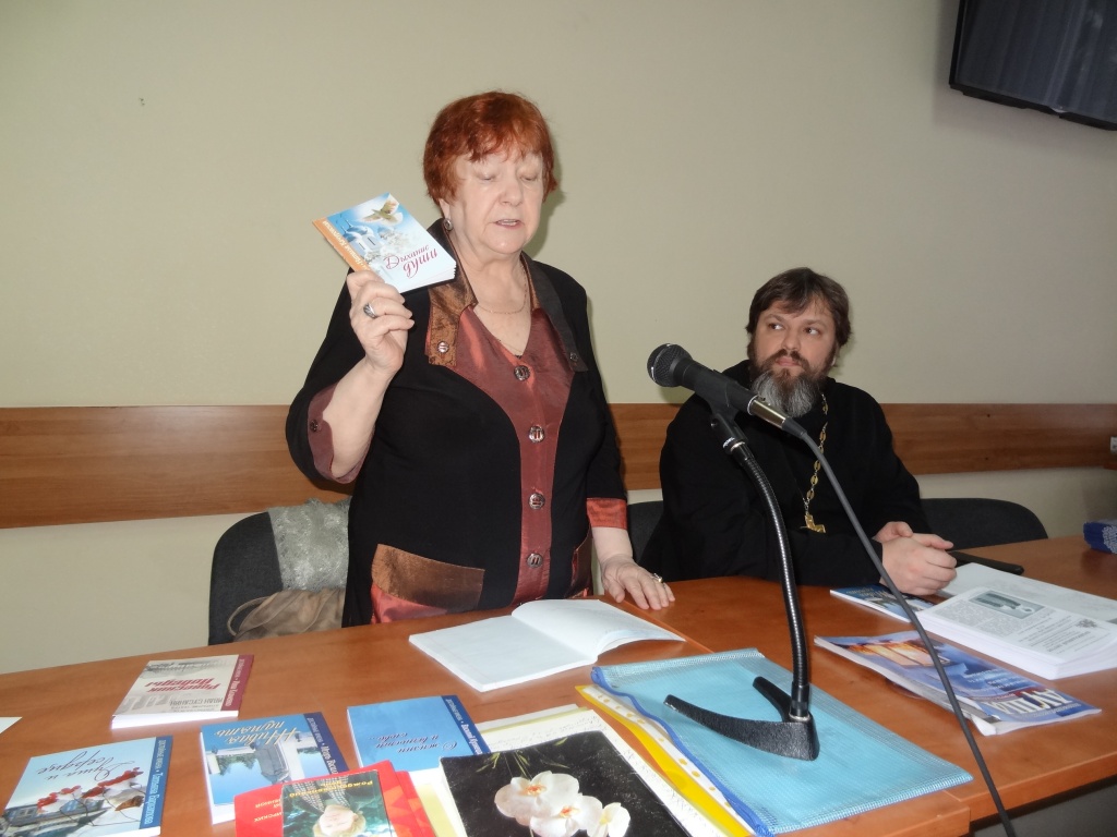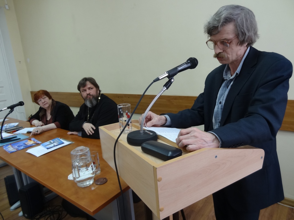 В клубе православных авторов новая книга — «Живая память» (+ видео)24 января 2015 года, в клубе православных авторов « В начале было Слово» состоялось презентация новой книги Игоря Алексеевича Васильева «Живая память». Это уже шестая книга из серии «Достойные имена» Новосибирской областной организации «Общества книголюбов». Автор идеи создания серии и главный редактор издательства «Светоч» — Татьяна Викторовна Пендюрина пишет об Игоре Алексеевиче: «Имя поэта Васильева – Игорь, что означает воин, защитник. И это не случайно. «Россия – воинская держава. Так сложились история нашей страны и судьба народа. Но никогда мы не вели войн захватнических, а лишь защищали свою родину. Это, наверное, и сформировало в поколениях тот особый воинский дух, что всегда поднимал страну на бой и не давал опуститься на колени перед врагом, - пишет автор, -…. Война затронула каждого из нас, заставляя в час испытаний объединиться. И пока мы помним об этом, мы будем жить и будет жить Россия». Стихи в книге «Живая память» - это лишь малая часть поэтического мира, созданного героико-романтическим историком Игорем Васильевым. Свою первую литературную работу «Любовь» он опубликовал в газете «Комсомолец Забайкалья», где служил в армии в мотострелковом полку в приграничной зоне. В армию он уходил «зелёным» мальчишкой, а вернулся в Новосибирск зрелым человеком. Поступил на исторический факультет педагогического института, т. к. история была всегда значима для него. Читать Игорь начал в дошкольном возрасте. Исторический роман В. Яна «Батый» прочитал запоем, любил книги о пионерах-героях, о войне, о концлагерях, приключенческую литературу, библиотека дома была более двух тысяч томов. А еще в те годы он вместе с мамой Зоей Семёновной объездил весь тогдашний Советский Союз: Москва, Ленинград, Киев, Черноморское побережье Кавказа и т. д. – всё это формировало характер юного Игоря. Мама была терпеливой, стойкой женщиной, с ней всегда было интересно. Так же всегда было интересно с её братом Юрием, который ушёл на войну добровольцем семнадцатилетним мальчишкой в 1941 году и дошёл до Берлина. А после войны дядя Юра увлекался историей, его даже прозвали на заводе «историк». Родился Игорь Васильев в 1955 году в посёлке Варва Черниговской области. Вместе с друзьями – пацанами по окрестным лесам лазали, партизанскую землянку нашли, в войнушку играли, конечно своих, советских защищали…. А ещё рыбалка. Дед Семён с детских лет рыбачить приучил, и до сих пор рыбалка главное увлечение Игоря Алексеевича. Хотя и других увлечений не мало было. Плаванием занимался, В детском садике - медведя изображал, песни пел, в художественной самодеятельности участвовал, стихи хорошо читал особенно Некрасова. «Кобзаря» Шевченко спокойно на украинском языке читал, сейчас подзабыл язык немного. В1966 году семья переехала в Новосибирск, Игорю одиннадцать лет было. С тех пор он сибиряк. Вместе с женой Верой Петровной сына Андрея вырастили, он фотохудожник. Игорь Алексеевич работает учителем истории в школе 65 Кировского района восемнадцать лет. До этого довелось ему и трубоукладкой заниматься, и в Пожарной Охране поработать, грузчиком, экспедитором на заводе Сибсельмаш и Сибтекстильмаш потрудиться. А ещё он был собственным корреспондентом многотиражной газеты «Голос рабочего». Его стихи звучат по мест
