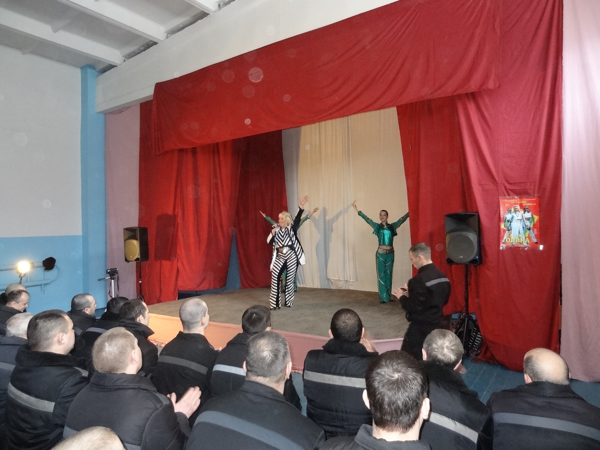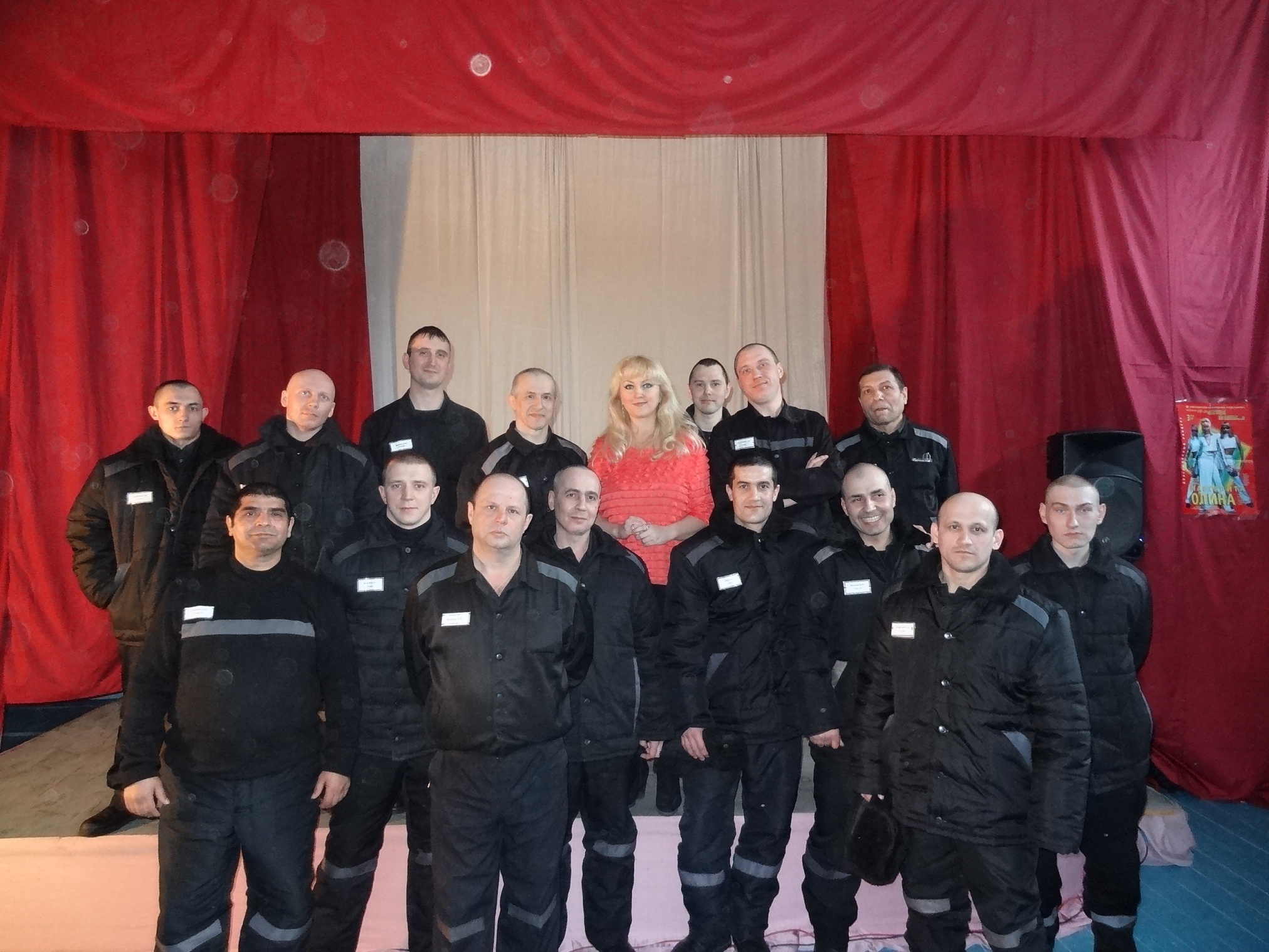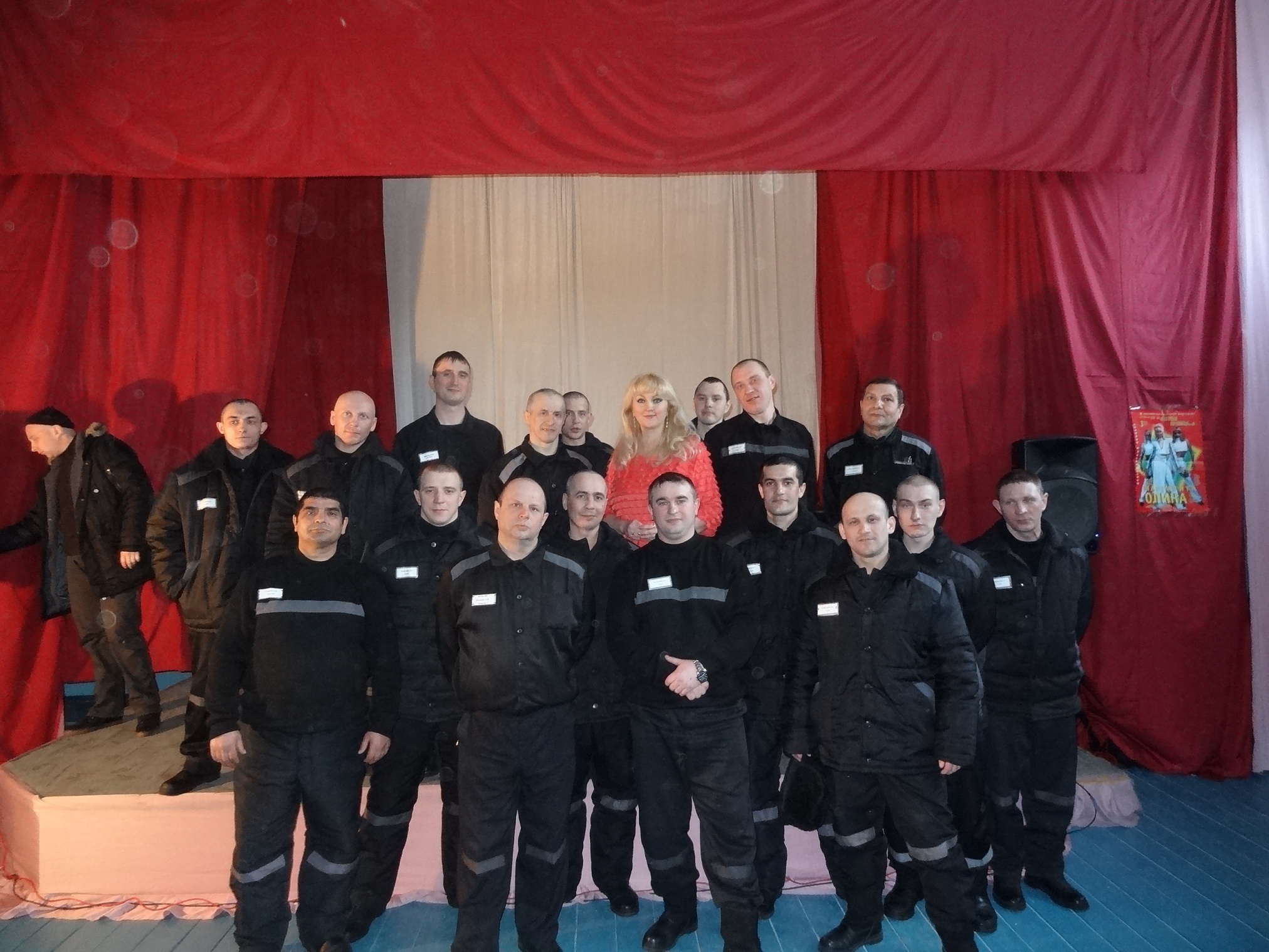 Благотворительная акция «Давайте улыбнемся!» продолжается11 марта 2015 года в ФКУ ИК 18 выступили Лауреат Всероссийских и Международных конкурсов Маргарита Олина и шоу-балет «Неон». Яркое, красочное, костюмированное, профессиональное, музыкальное представление смогли посмотреть более четырехсот осужденных. Мероприятие прошло в рамках благотворительной акции "Давайте улыбнемся!" В исправительных учреждениях ГУФСИН России по НСО, акция проходит с 2008 года и включает в себя культурно-просветительские мероприятия. С 2008 г. по 2015г., организовано и проведено более 75 (семидесяти пяти) культурно- просветительских мероприятий, в них задействовано более 350 деятелей культуры. Маргарита Олина, является лауреатом конкурсов «Юрмала», «Сопот», Гран-при Всероссийского фестиваля «Таланты и Поклонники» в Санкт-Петербурге. Она выступала на лучших площадках Новосибирска, Сочи, Адлера, Красноярска, Москвы, Кемерово, Вильнюса, Праги, Суздаля, Польши, Швеции, Германии и Греции. Ее песни звучали на радио и телевидении. Она принимала участие в популярных передачах Центрального телевидения: « У Ксюши» и «Клип-антракт». Маргарита имеет высококлассную профессиональную подготовку, в ее репертуаре около 700 песен, в том числе англоязычная программа блюзов и 5 авторских альбомов. Ее композиции, записанные в лучших студиях, входят в европейские сборники песен. Сняты клипы на ее песни: «Облака», «Гавань», «Давай устроим праздник», «Быть с тобой» и др. Маргарита Олина и ее шоу-балет «Неон», в программе « Золотой Хит», представляют яркое, красочное, костюмированное и профессиональное шоу. В программе творческого коллектива популярные песни 70-х, 80-х, 90-х, а так же танцевальные хиты зарубежной эстрады. В 2007 году, Маргарита Олина, была награждена дипломом областной администрации «За вклад в развитие музыки города Новосибирска». Огромное количество побед в конкурсах и фестивалях говорит о ее профессионализме и творческом потенциале. Концерт прошел с большим успехом, зрители принимали активное участие в мероприятии, аплодировали, даже подпевали известные песни. За участие в благотворительной акции «Давайте улыбнемся!», заместитель начальника ИК-18 Леонид Зинченко вручил благодарственные письма Маргарите Олиной и ее коллективу. В завершении все желающие имели возможность сфотографироваться и получить в подарок Святое Евангелие.