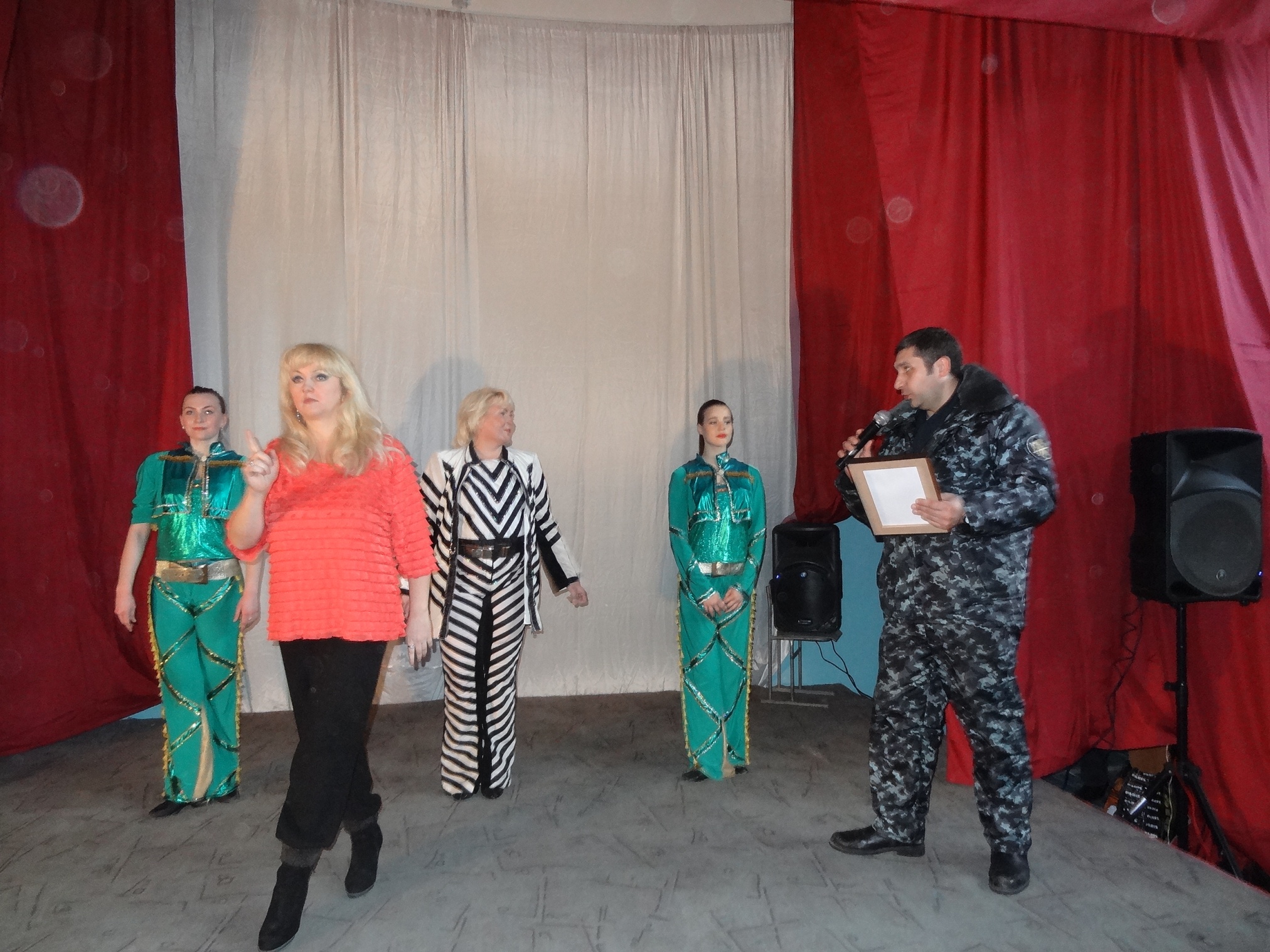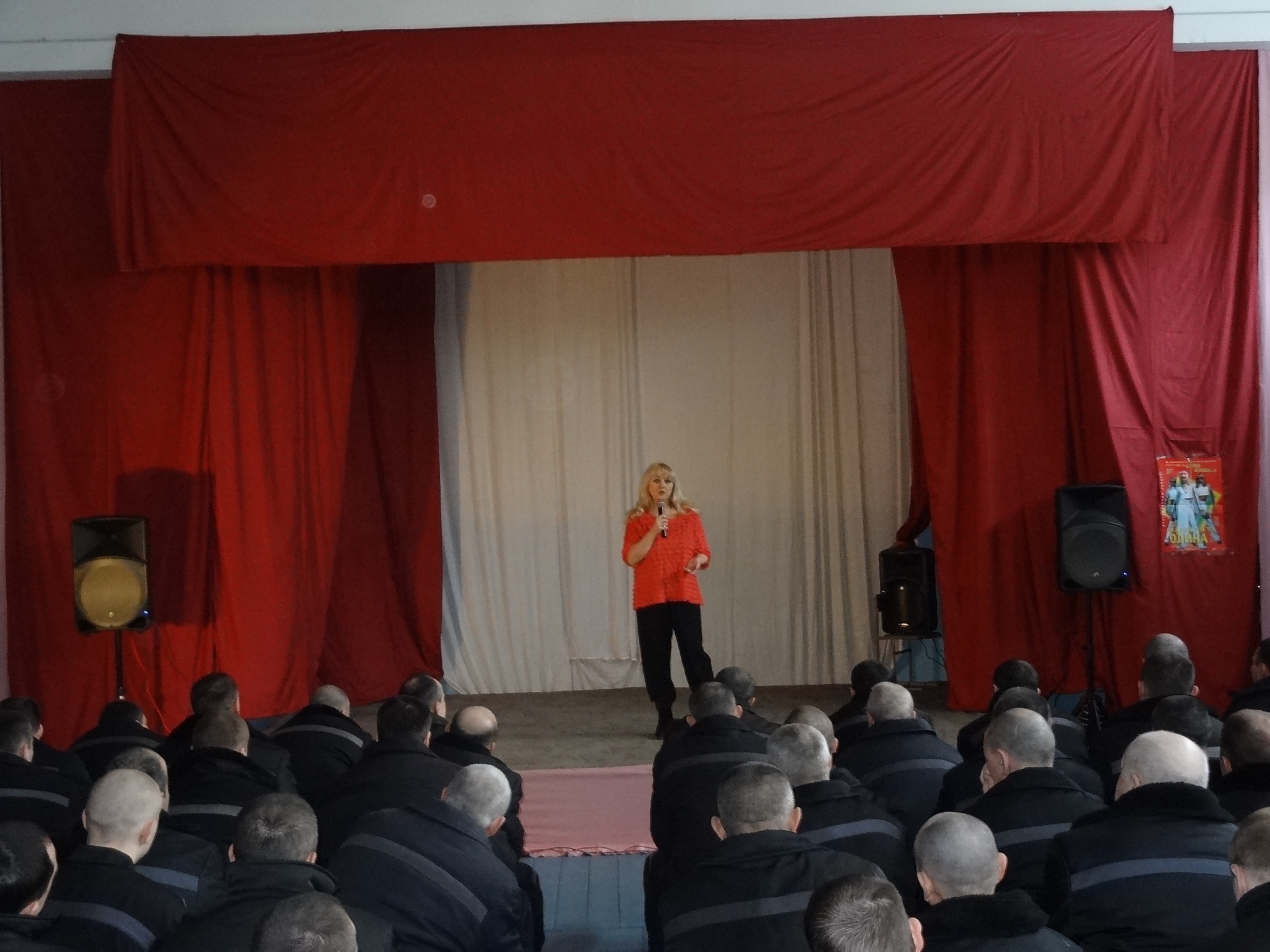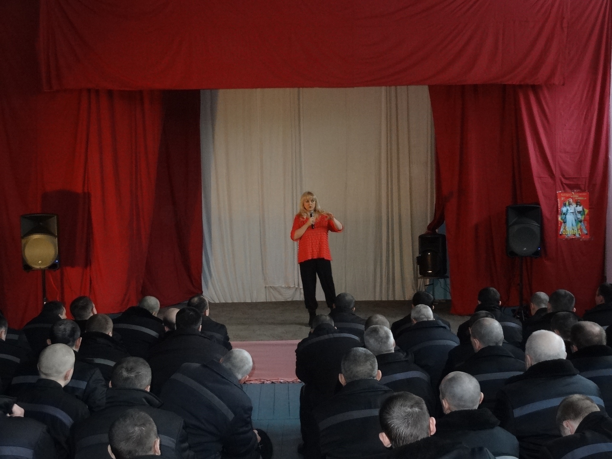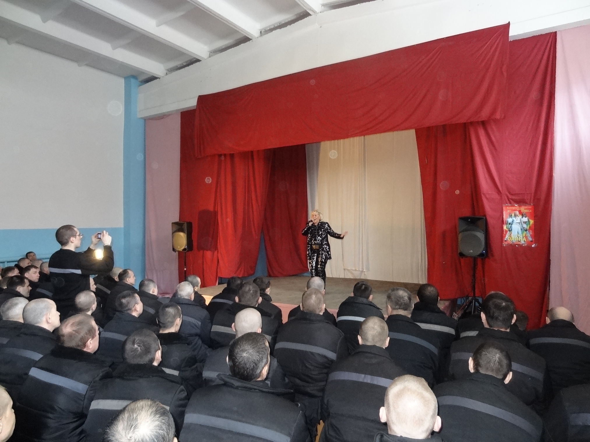 Благотворительная акция «Давайте улыбнемся!» продолжается11 марта 2015 года в ФКУ ИК 18 выступили Лауреат Всероссийских и Международных конкурсов Маргарита Олина и шоу-балет «Неон». Яркое, красочное, костюмированное, профессиональное, музыкальное представление смогли посмотреть более четырехсот осужденных. Мероприятие прошло в рамках благотворительной акции "Давайте улыбнемся!" В исправительных учреждениях ГУФСИН России по НСО, акция проходит с 2008 года и включает в себя культурно-просветительские мероприятия. С 2008 г. по 2015г., организовано и проведено более 75 (семидесяти пяти) культурно- просветительских мероприятий, в них задействовано более 350 деятелей культуры. Маргарита Олина, является лауреатом конкурсов «Юрмала», «Сопот», Гран-при Всероссийского фестиваля «Таланты и Поклонники» в Санкт-Петербурге. Она выступала на лучших площадках Новосибирска, Сочи, Адлера, Красноярска, Москвы, Кемерово, Вильнюса, Праги, Суздаля, Польши, Швеции, Германии и Греции. Ее песни звучали на радио и телевидении. Она принимала участие в популярных передачах Центрального телевидения: « У Ксюши» и «Клип-антракт». Маргарита имеет высококлассную профессиональную подготовку, в ее репертуаре около 700 песен, в том числе англоязычная программа блюзов и 5 авторских альбомов. Ее композиции, записанные в лучших студиях, входят в европейские сборники песен. Сняты клипы на ее песни: «Облака», «Гавань», «Давай устроим праздник», «Быть с тобой» и др. Маргарита Олина и ее шоу-балет «Неон», в программе « Золотой Хит», представляют яркое, красочное, костюмированное и профессиональное шоу. В программе творческого коллектива популярные песни 70-х, 80-х, 90-х, а так же танцевальные хиты зарубежной эстрады. В 2007 году, Маргарита Олина, была награждена дипломом областной администрации «За вклад в развитие музыки города Новосибирска». Огромное количество побед в конкурсах и фестивалях говорит о ее профессионализме и творческом потенциале. Концерт прошел с большим успехом, зрители принимали активное участие в мероприятии, аплодировали, даже подпевали известные песни. За участие в благотворительной акции «Давайте улыбнемся!», заместитель начальника ИК-18 Леонид Зинченко вручил благодарственные письма Маргарите Олиной и ее коллективу. В завершении все желающие имели возможность сфотографироваться и получить в подарок Святое Евангелие.