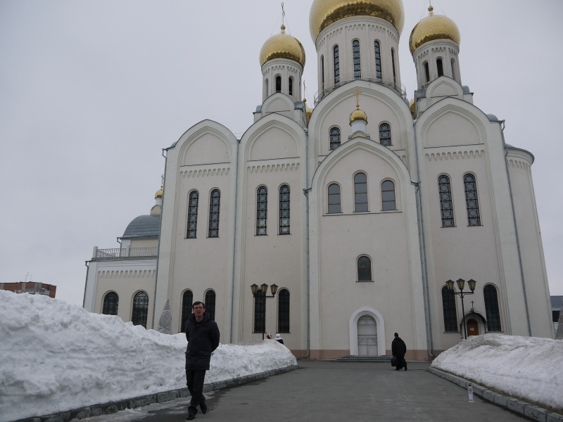 По пути домой, проезжая мимо Свято - Троице-Владимирского собора в г. Новосибирске, мы не могли его не посетить. Оказывается, собор является одним из самых масштабных и величественных храмов в Западной Сибири. Высота его почти 60 метров. Построен он в начале 2000-ых годов стараниями братии Михаило-Архангельского мужского монастыря, а также с участием прихожан. Отрадно, что у истоков закладки и начала строительства стоял и наш игумен Кирилл (Скакальский). Собор имеет два уровня: нижний освящён в честь Святой Троицы (главный придел) и преподобного Сергия Радонежского, на втором этаже – главный придел во имя св. равн. князя Владимира, боковой придел во имя св. равноап. Кирилла и Мефодия. В 2013 году Собор освящал сам Святейший Патриарх Кирилл.