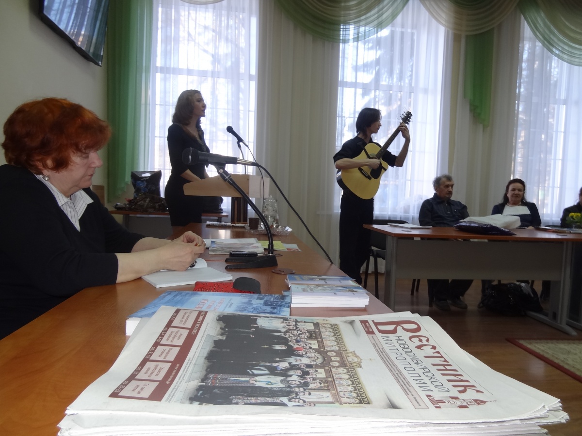 С музыкальным поздравлением выступили участники ЛМФ «Надежда». Читала стихи Ангелина Басалаева, дочь поэта Надежды Басалаевой. В программе прозвучали музыкальные произведения, в исполнении Егора Кузьмина и Владимира Бочарова. Ангелина Басалаева председатель оргкомитета Новосибирского Литературно Музыкального Фестиваля "Надежда", его инициатор и вдохновитель. Основной целью ЛМФ "Надежда" и своей основной задачей Ангелина видит популяризацию литературного творчества новосибирских авторов (прозаиков и поэтов), и сопутствующего литературе исполнительского искусства (бардов и чтецов) прежде всего среди молодежи Новосибирска и Новосибирской области. Духовник клуба авторов, протоиерей Иаков Конкин поздравил авторов с новыми произведениями, и по просьбе прихожанки Храма Успения Божией Матери, Ксении Асиновской, которая по болезни не может посещать заседания клуба, вновь прочитал несколько ее стихотворений. В завершении встречи отец Иаков раздал всем Вестник Новосибирской Митрополии.