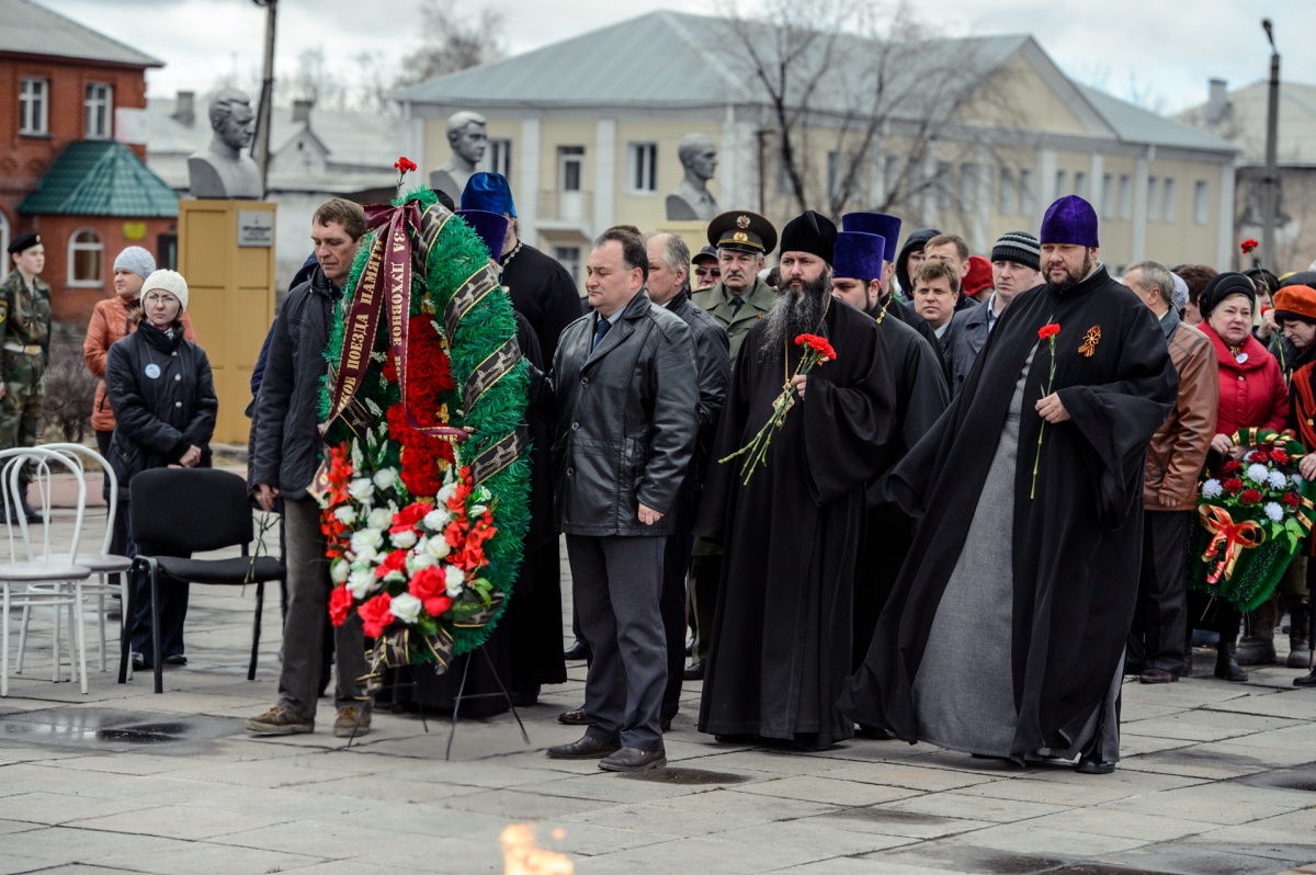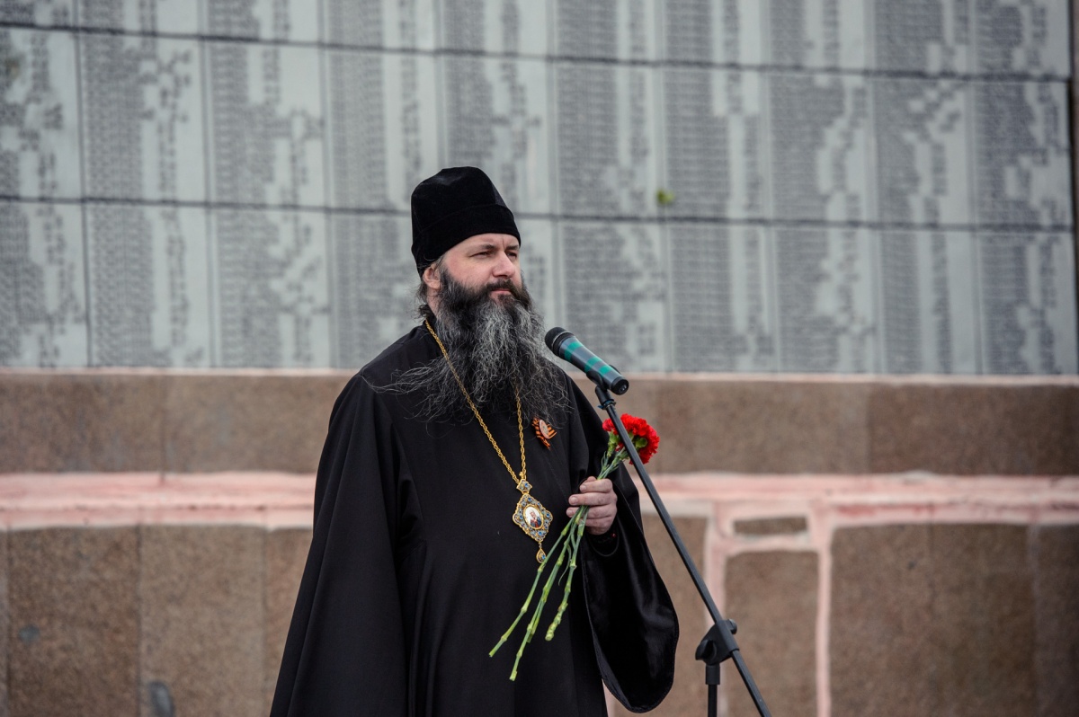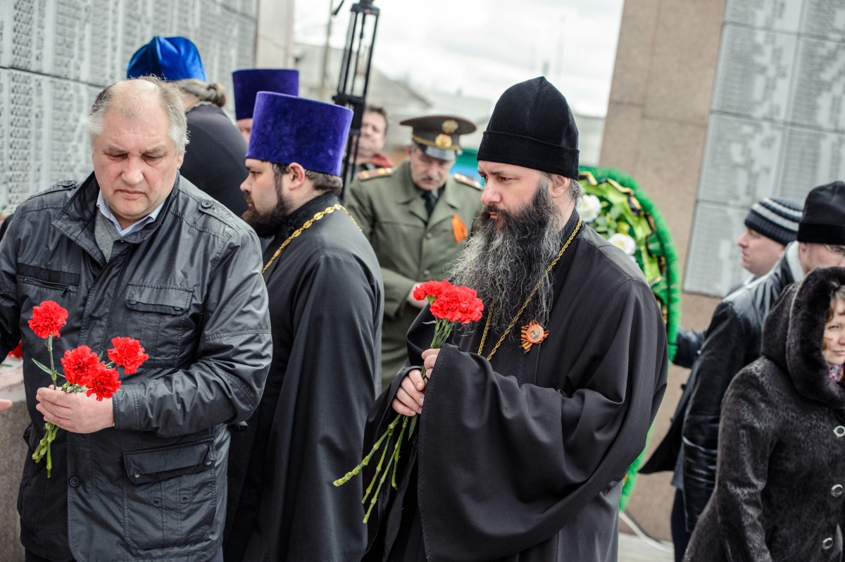 После Литургии состоялась торжественное возложение венков к мемориалу славы города Барабинска, панихида по воинам, павшим в годы Великой Отечественной войны и встреча с ветеранами. Владыка Тихон поздравил воинов и тружеников тыла с 70-летие Победы в Великой Отечественной войны. "С каждым годом все труднее осуществлять акцию Поезда Памяти, но мы всегда с воодушевлением и энтузиазмом приезжаем в райцентры и села, особенно в годы, когда мы празднуем юбилеи Великой Победы, чтобы поздравить вас и поблагодарить за мужество и героизм участников войны, почтить героев тыла. Очень много сибиряков погибло в боях на самых ответственных участках фронта, и мы не должны забывать цену Победы", - обратился к ветеранам Митрополит Тихон.