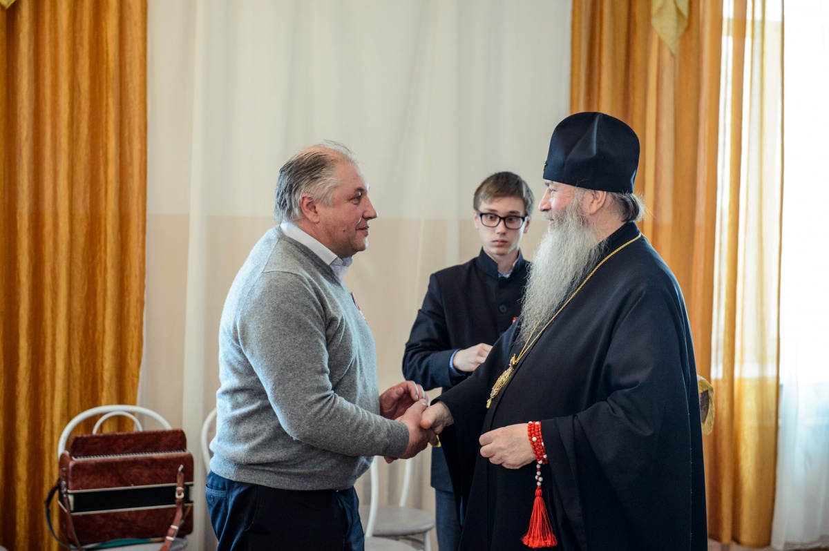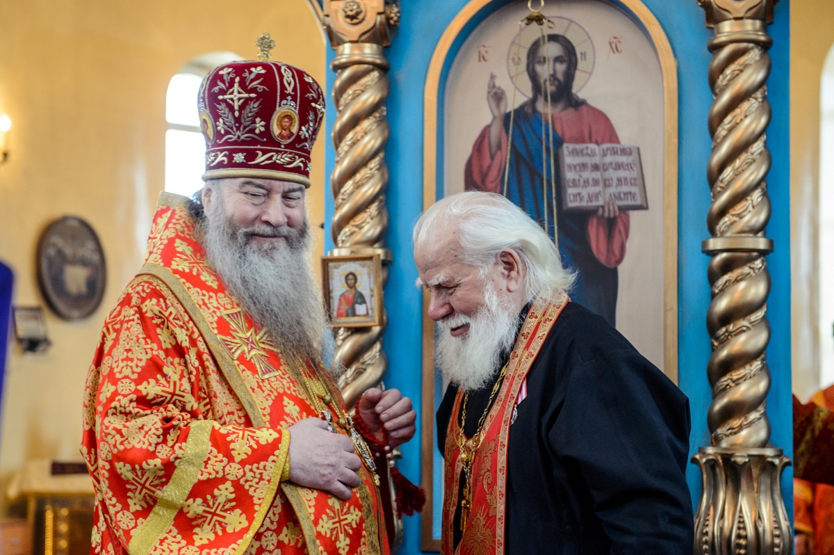 В завершение богослужения Митрополит Тихон наградил памятной медалью Новосибирской Епархии, посвященной 1000-летию преставления святого равноапостольного князя Владимира, старейшего клирика Каинской епархии иерея Иоанна Молчанова, который 29 марта отметил свое 90-летие.