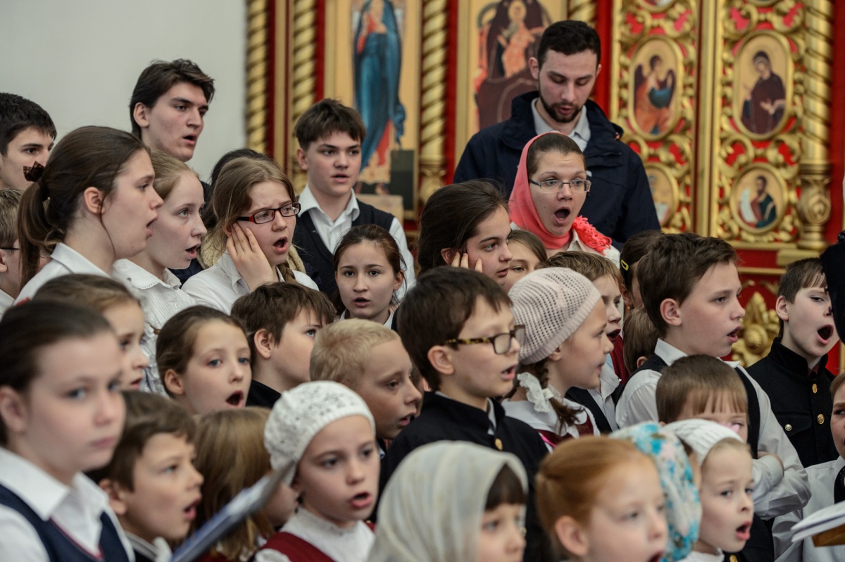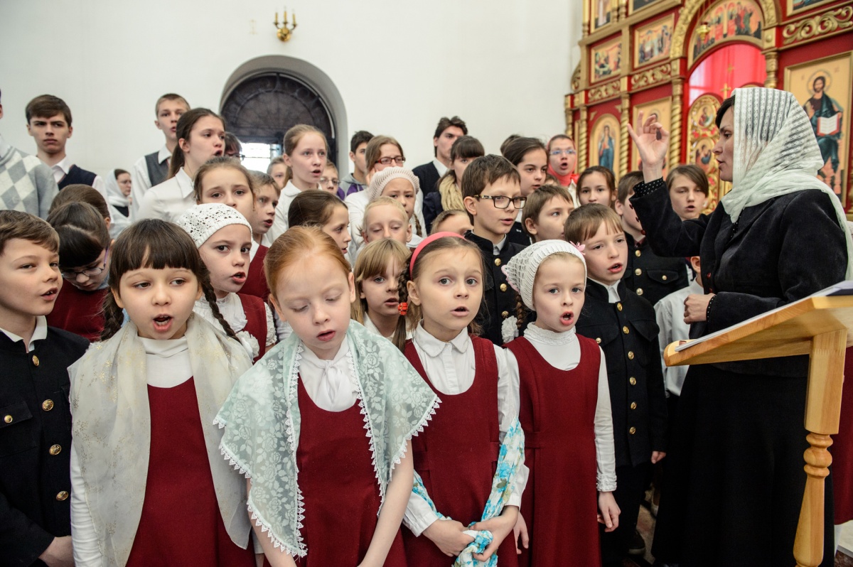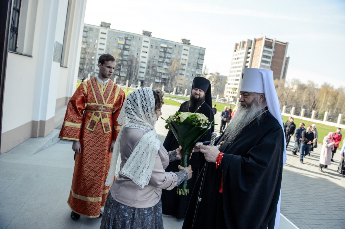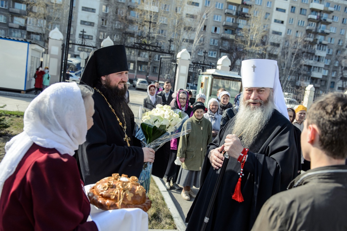 Дети встречали Владыку у дверей храма с хлебом-солью, сопроводили на второй этаж собора в храм во имя святого благоверного князя Владимира. Вся служба была разделена между шестью детскими хорами Вознесенского кафедрального собора, Гимназии во имя преподобного Серафима Саровского (г. Бердск), Гимназии во имя святого благоверного князя Владимира, Православной гимназии во имя Преподобного Сергия Радонежского (Академгородок), Православной гимназии во имя святых равноапостольных Кирилла и Мефодия, Гимназии во имя святителя Игнатия Брянчанинова. Они пели красиво и слажено.