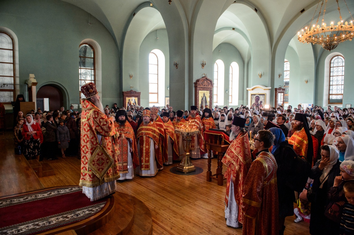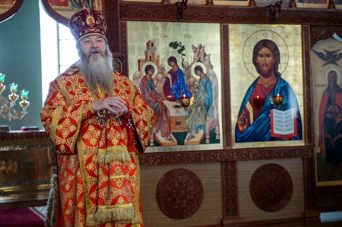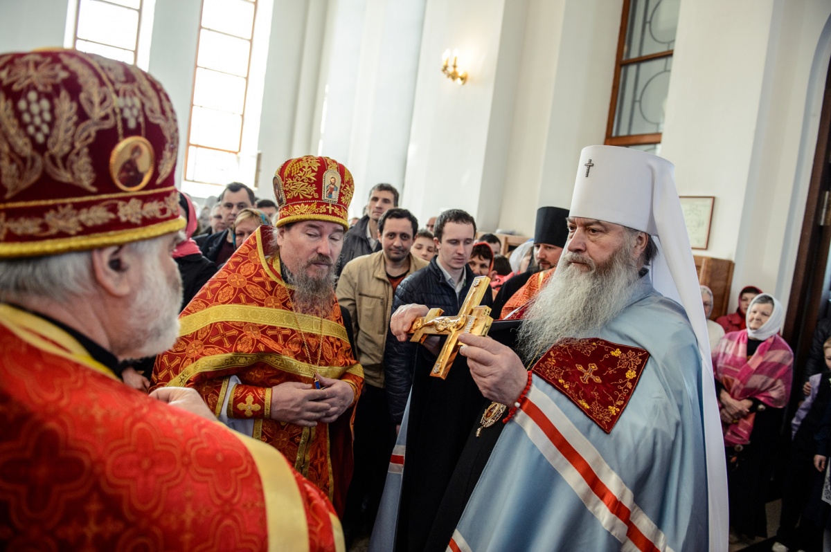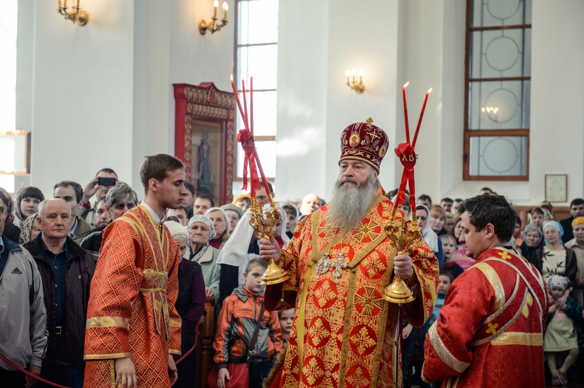 В приветственном слове Владыка Тихон поздравил прихожан и детей с Воскресением Христовым и днем памяти святых жен-мироносиц и сказал: «Сегодня мы вспоминаем святых жен-мироносиц, которые служили Христу и которые остались у Креста, не испугавшись притеснений со стороны иудеев. В этом году мы празднуем 70-летие Великой Победы нашего народа над фашистскими захватчиками и чтим память всех наших героев, погибших на полях сражения. Наши воины показали подвиг самопожертвования в Великой Отечественной войне. Большинство из них были крещеные, православные люди, воспитанные в царское время. У них мы учимся настоящей любви, заимствуем основы православного патриотизма — положить душу свою за друзей своих.
