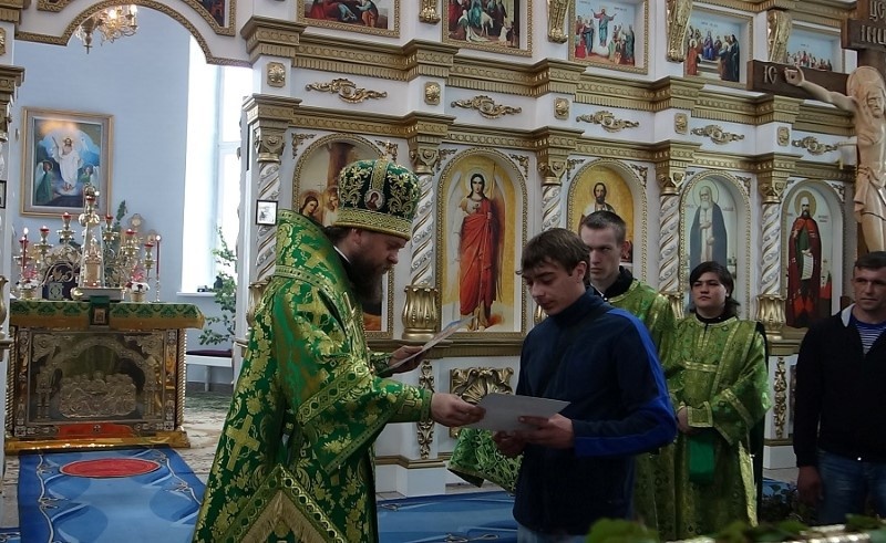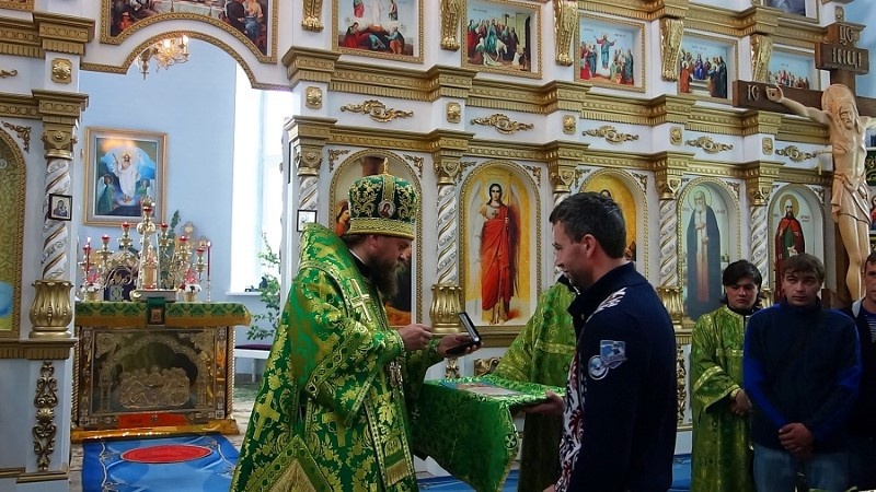 По окончании богослужения состоялось награждение медалями и Архиерейскими грамотами благодетелей и строителей храма Святой Троицы и духовно-просветительского центра в Ордынске.
