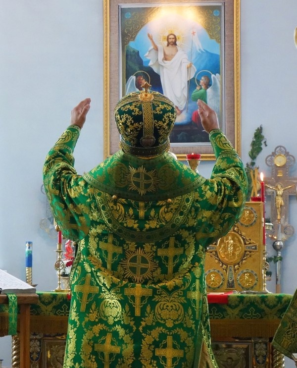 В приветственном слове Владыка поздравил еще раз всех с престольным праздником и напомнил, что День Святой Троицы, Пятидесятница, является Днем рождения нашей Церкви и что в тот момент, когда Святой Дух сошел на апостолов, они облеклись благодатью Святого Духа и пошли на проповедь по всему миру.