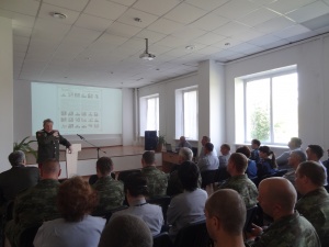 В учебном центре ГУФСИН России по Новосибирской области состоялась встреча с членами клуба православных авторов «В начале было Слово»Фабрика Юрий Аркадьевич - военный историк, научный сотрудник музея истории СибВО, член Петровской Академии наук и искусств, профессор Международной Славянской академии, старшина Сибирского казачьего войска, заслуженный работник культуры РФ, член клуба православных авторов «Вначале было Слово» посетил Учебный центр ГУФСИН России по Новосибирской области. Родился Юрий Аркадьевич Фабрика в семье сельских учителей. Окончил НГПИ, историко-филологический факультет. Является одним из первых участников созданного 50 лет назад археологического кружка, принимал участие во многих экспедициях. Трудовую деятельность начал в Колывани, где работал учителем истории и воспитателем в школе-интернате. Окончил Новосибирскую ВПШ, был оставлен здесь на кафедре журналистики преподавателем международных отношений. В 1989 в областном Обществе знаний впервые прошли альтернативные выборы председателя. Из троих кандидатов абсолютное большинство выбрало Фабрику. Много времени он отдал работе в архивах России. Автор книг «Сибирский военный округ» (в соавторстве с В.А. Копыловым, В.П. Милюхиным), «Сибирский щит», «Церковь и армия в России», «Служить народу своему», «Возникновение сибирского казачьего войска». Публиковался в «Советской Сибири», «Вечернем Новосибирске», «Трудовой правде», а также во многих научных сборниках. Автор 87 статей Новосибирской энциклопедии. Благодаря работе с архивами в Подольске восстановил список сибирских дивизий и точную дату возникновения СибВО. Семь лет потратил на поиски маршей Сибирского казачьего войска. Удостоен золотой медали «За вклад в наследие народов России» (2006).