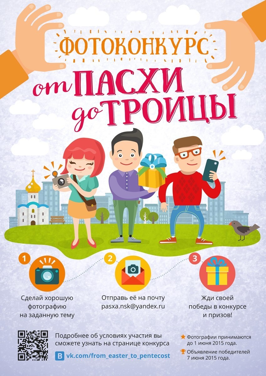 Итоги фотоконкурса "От Пасхи до Троицы"Фотоконкурс "От Пасхи до Троицы" - конкурс фоторабот, в рамках празднования Пасхи Господней и дня Святой Троицы, проходил в Новосибирске с 27 апреля по 1 июня. В Конкурсе мог принять участие абсолютно каждый человек, работа которого соответствовала требованиям к Конкурсу организованномуприходом храма в честь иконы Божьей Матери «Знамение-Абалацкая» и приходом храма во имя Преподобного и благоверного князя Олега Брянского города Новосибирска.