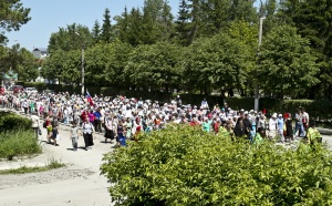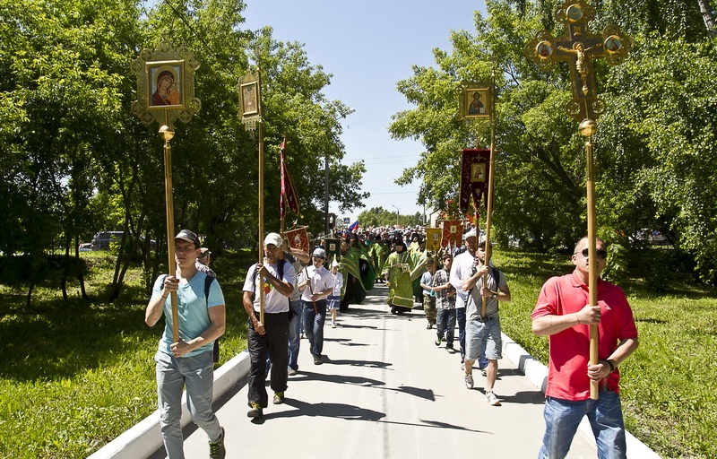 Крестный ход «За духовное возрождение России» прошел в Новосибирской области14 июня 2015 года православные России отметили день памяти всех святых земли Русской. По традиции в этот день в Искитимской районе прошел ежегодный Крестный ход «За духовное возрождение России». Среди участников – жители Новосибирска, Бердска, Искитимского и других районов области. Крестный ход возглавил епископ Искитимский и Черепановский Лука. Десять километров пешком – путь, который прошли паломники от храма в честь иконы Божией Матери «Владимирская» до известного всему региону Святому источнику на станции Ложок. Только одна остановка – в Храме в честь иконы Божией Матери «Неупиваемая Чаша». Во время пути к паломникам присоединялись искитимцы. Это торжественный день для Искитима. Хоругви, звон колоколов и молитвы, обращенные к русским святым. «Русские святые - это те люди, которые своим трудом, своими молитвами угодили Богу и, стоя перед престолом Божиим, молятся за нас, и Господь посылает свою благодать. Мы видим, что сегодня многие стали ходить в храмы, в том числе и молодежь», - говорит иерей Иаков Шумбасов.Крестный ход на Святой источник в Искитимском районе – маршрут традиционный, он собирает паломников со всей области. Идут целыми семьями. Среди участников - представители практически всех приходов Искитимской и Черепановской епархии, ученики воскресных школ и очень много молодежи. «Я пришла сюда, чтобы помолиться Богу за своих родных и близких. Попросить всех святых, которые молятся за нас на небесах, здоровья, а главное, мира во всем мире», - делится своими мыслями студентка Бердского медицинского колледжа Любовь Бирюкова. Первая остановка - в Храме в честь иконы Божией Матери «Неупиваемая Чаша». В этом, в одном из самых красивых храмов епархии паломники во главе с епископом Лукой совершили молитвенное обращение к святым, просиявших своими добродетелями в нашем Отечестве. Спустя два с половиной часа, участники Крестного хода оказались на Святом Источнике. Здесь уже немало людей ожидали торжественного молебна и благословления епископа Искитимского и Черепановского Луки. Владыка Лука поздравил всех с праздником и призвал следовать словам святых, чья жизнь стала примером для православных России. В своем обращении к паломникам епископ Лука отметил: «Россия возрождается. Отрадно видеть, что сегодня очень много людей пришло почтить память наших святых. Давайте жить по Евангелию и быть православными христианами не только на словах, но и на деле. Эта страна наша не зря называется Святой Русью. Наш идеал – стремление к Богу, стремление к правде, миру и милосердию».