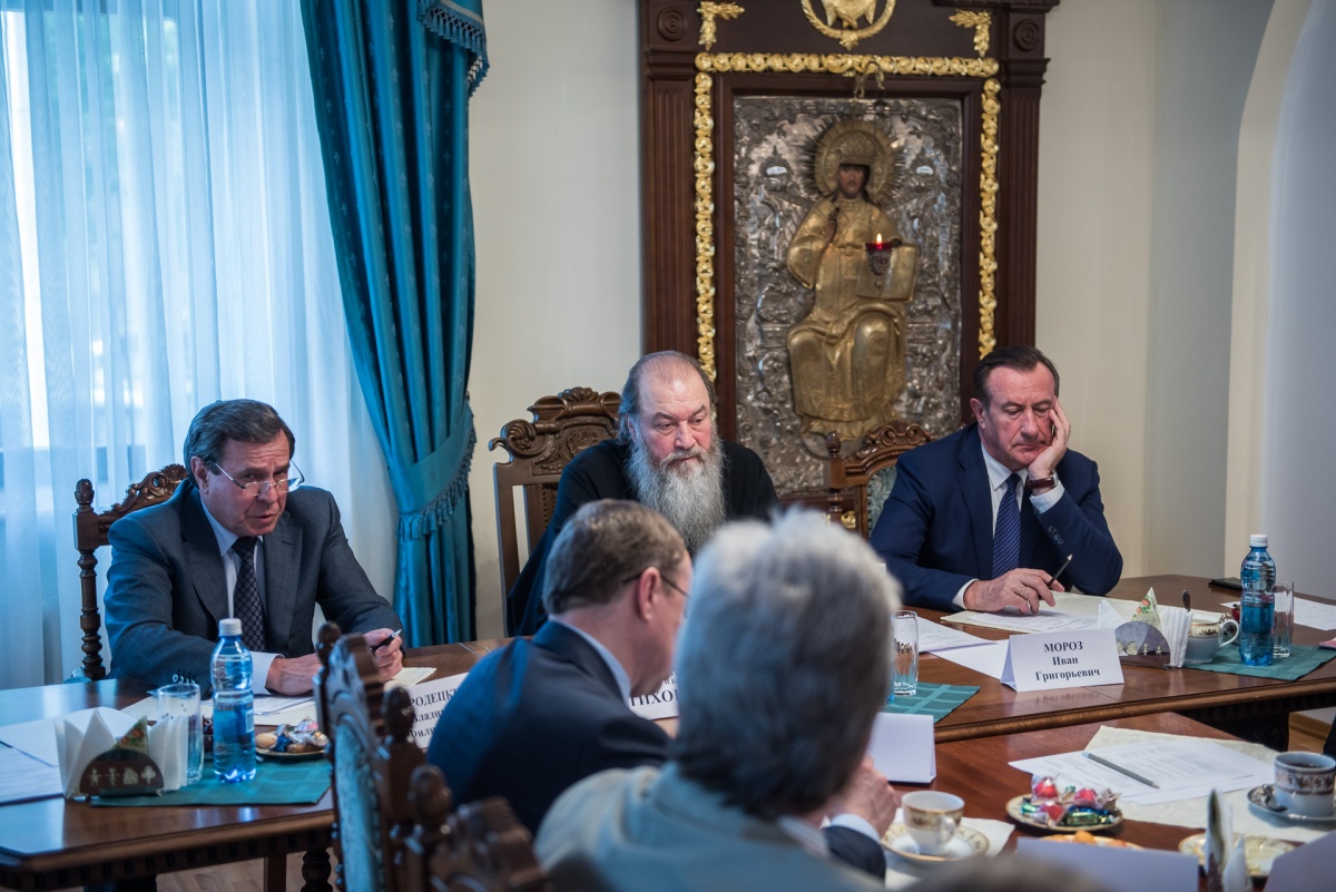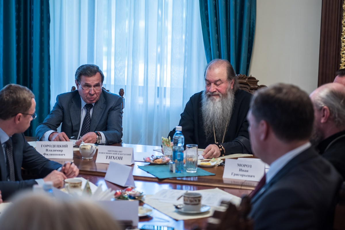 В ходе обсуждения вопросов Повестки дня Заседания Президиума НРОО «ВРНС» активное участие приняли Председатель Организации Владыка Тихон, а также члены Президиума: В.Ф. Городецкий, Губернатор Новосибирской области; Л.Г. Панин, декан гуманитарного факультета НГУ и А.В. Красов, Руководитель секретариата НРОО «ВРНС».