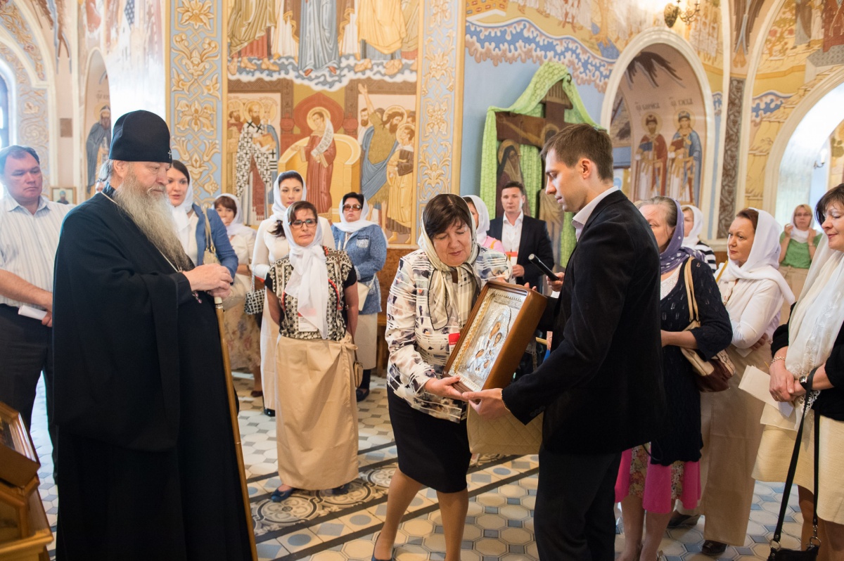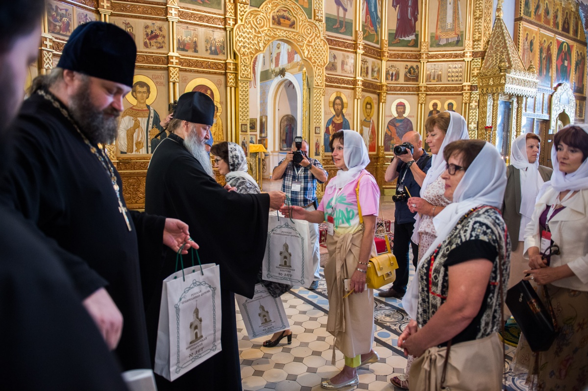 Супруга президента ОАО "Российские железные дороги" Наталья Викторовна Якунина преподнесла в подарок Владыке икону Пресвятой Богородицы. Митрополит Тихон в память о посещение Александро-Невского собора подарил каждому гостю книгу, в которой отражена история и современная жизнь храма.
