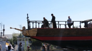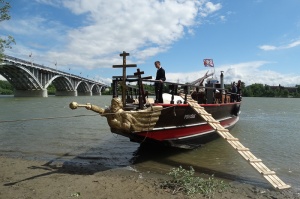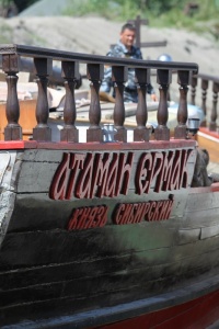 Казаки с иконой прибыли по реке Обь на казачьем струге «Атаман Ермак«. Отчалили они из Барнаула, На струге Ермак казакам предстоит пробыть ближайшие полгода. К ноябрю они дойдут до Ямала. Потом будет перерыв на зиму. И новая экспедиция, уже по Енисею. В общей сложности казаки проплывут 10 000 км! И это будет первый в новейшей истории России настолько продолжительный крестный ход по воде.