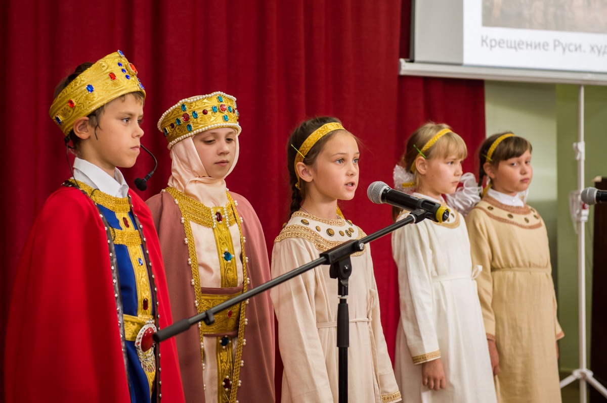 Учащиеся Гимназии в честь юбилея подготовили праздничный концерт и театрализованное представление, а также мультфильм о жизни князя Владимира и Крещении Руси.