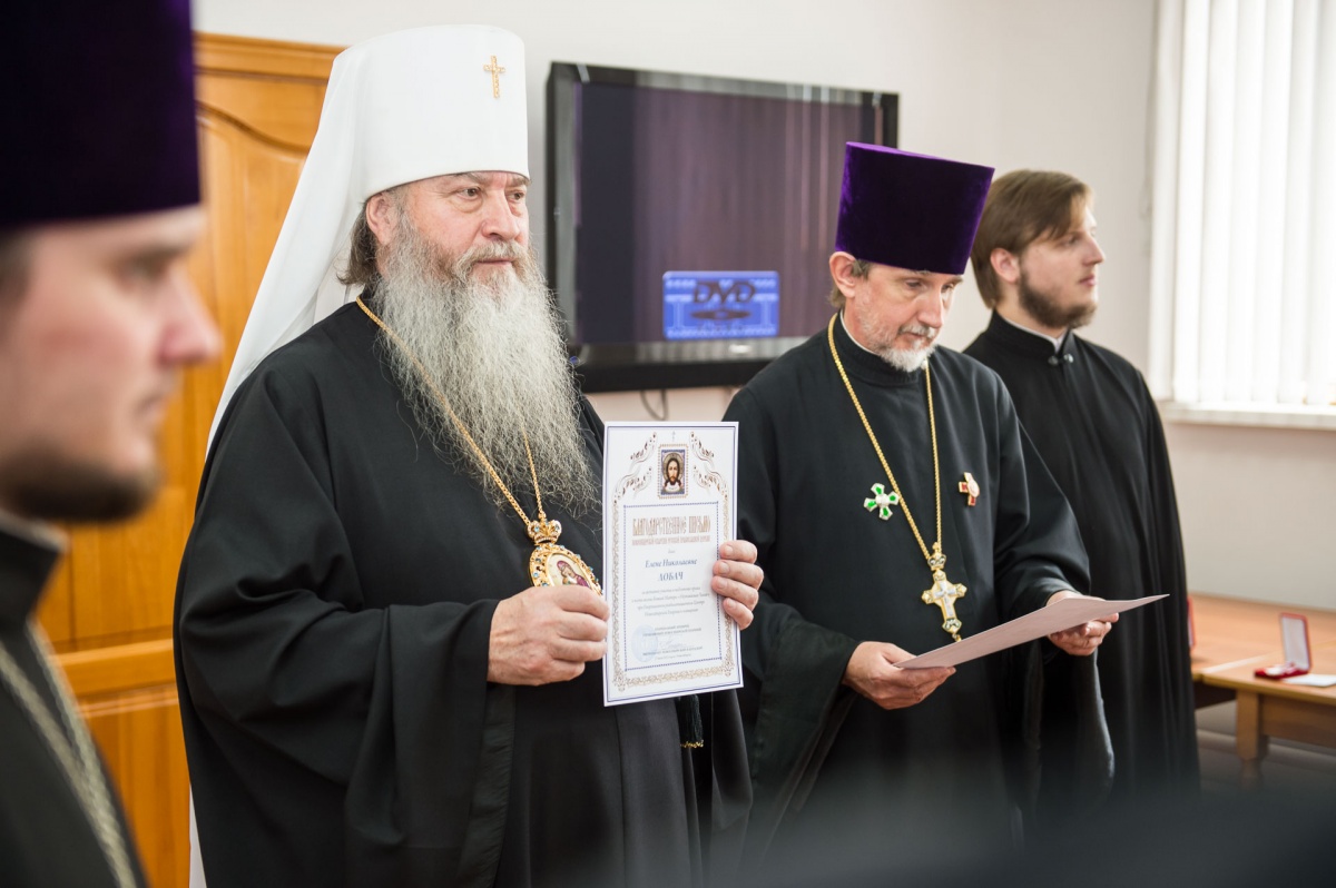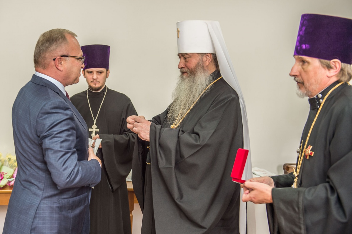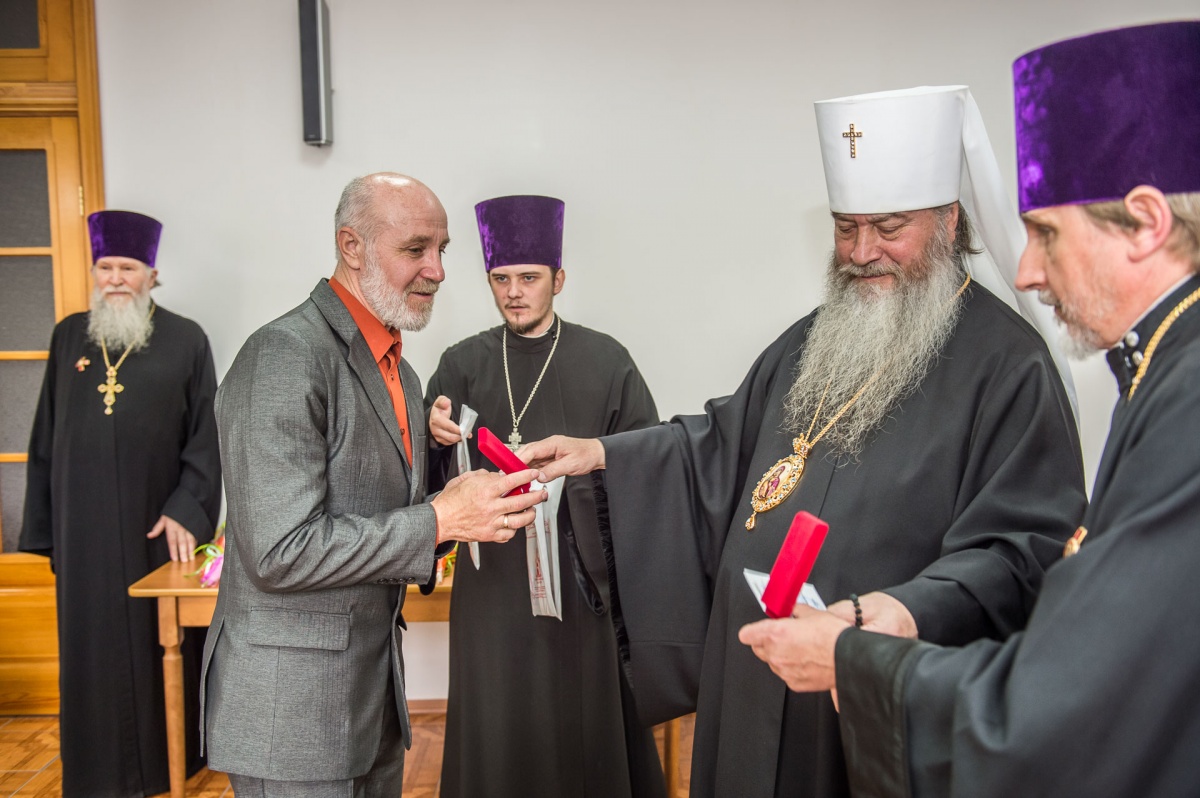 Состоялось награждение юбилейными медалями в честь 1000-летия преставления святого равноапостольного князя ВладимираНаград были удостоены ряд священнослужителей Новосибирской Епархии, сотрудники областной и городской администрации, епархиальных структур и отделов, представители общественности, благотворители. Митрополит Тихон, приветствуя участников собрания, поздравил всех с днем памяти святого равноапостольного князя Владимира. Он рассказал о значении личности святого князя и важности Крещения Руси в 988 году. "За эти тысячу лет многое изменилось на Руси, а вера православная осталась, - процитировал слова Святейшего Патриарха Кирилла Владыка Тихон. - Эта вера объединяет всех нас, наши славянские народы - русский, украинский, белорусский, и многие другие народы, которые приняли Православие. Православие является стержнем нашей цивилизации. То, что мы являемся преемниками святого князя Владимира и считаем себя наследниками Святой Руси, мы и отмечаем в эти дни".