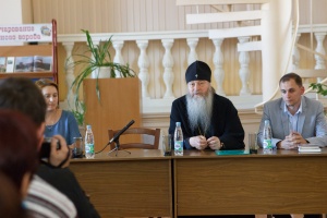 Состоялась встреча Митрополита Тихона и молодежного актива Калининского района НовосибирскаВстреча прошла 11 августа в библиотеке им. Лихачева по инициативе Общественного молодежного совета района. Участниками сегодняшней беседы стали представители школьного и студенческого самоуправления, члены Общественного молодежного совета Калининского района, молодежных комитетов крупных предприятий района (НЗХК, ПО Север, НМЗ «Искра», ОАО «Государственный проектный институт «ВНИПИЭТ»), депутат Молодежного парламента области Матвей Анатольевич Пляшник, представители православных молодежных клубов района. Ребята задавали Митрополиту Тихону вопросы о выборе жизненного пути, воспитании патриотизма и духовно-нравственных ценностей у детей и молодежи, об интересных случаях в жизни Владыки. Владыка по просьбе участников встречи рассказал о том, как он стал священнослужителем. «Сделать выбор непросто, но когда уверен, что служишь делу, которое и тебе, и другим людям приносит пользу, то приходит уверенность». Митрополит Тихон затронул также актуальную тему преподавания в школах предмета Основы религиозных культур и светской этики и призвал молодежь внимательнее отнестись к воспитанию подрастающего поколения. На вопрос о святых местах Новосибирской области и чудесных случаях Владыка ответил, что все чудеса происходят по вере человека. «Вера меняет мировоззрение», - говорит Митрополит Тихон. Он также отметил, что в современном мире многие вместо истинного Бога находят ложного, и, служа ему, человек приобретает зависимость и теряет свободу. По словам одного из организаторов встречи Матвея Пляшника, все участники встречи обратились с просьбой к Митрополиту Тихону о проведении цикла бесед об истории Русской Православной Церкви.