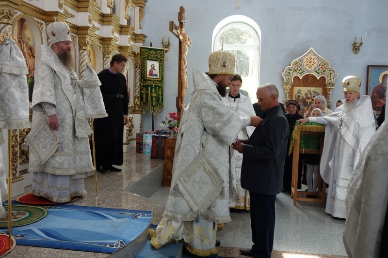 Затем епископ Филипп наградил медалью в честь тысячелетия преставления святого равноапостольного князя Владимира Петра Иаковлеча Кудрявцева, архиерейские грамоты получили благодетели и сотрудники собора.