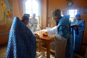 Владыка поздравил всех присутствующих с освящением храма, и выразил особые слова благодарности митрополиту Новосибирскому и Бердскому Тихону и главному устроителю этого храма, председателю ЗАО племзавод «Ирмень» Юрию Федоровичу Булгакову.