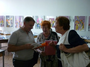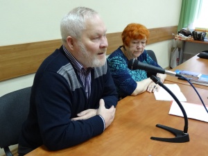 Поздравить авторов пришел давний друг книголюбов Михаил Щукин. Михаил Николаевич Щукин – главный редактор старейшего Новосибирского журнала «Сибирские огни». Член Союза писателей РФ, лауреат премии Ленинского комсомола, редактор журнала "Сибирская горница". Родился в селе Мереть Сузунского района Новосибирской области. После восьмилетки поступил в Новосибирский книготорговый техникум. В семнадцать лет стал сотрудником районной газеты в рабочем поселке Сузун, затем работал в Новосибирской областной газете и в журнале «Огонёк». Михаил Щукин - участник Седьмого Всесоюзного совещания молодых писателей. Автор книг «Посидели, поговорили» (1980), «Дальний клин» (1982), «Оборони и сохрани» (1987).Его роман «Имя для сына» был отмечен премиями имени Н.Островского и Ленинского комсомола. В 2008году он написал и издал роман «Конокрад и гимназистка».