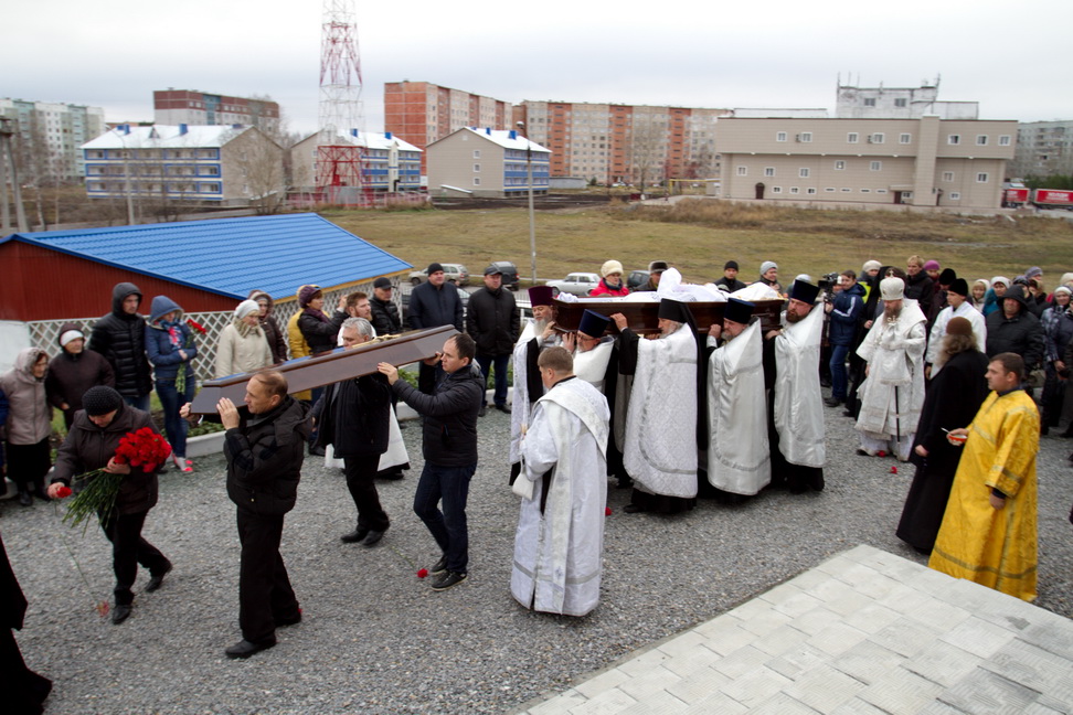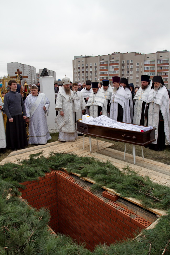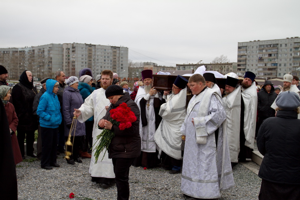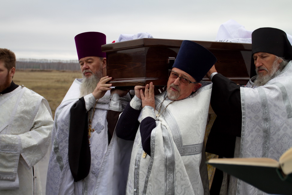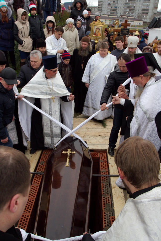 Проводить протоиерея Бориса в последний путь собрались священнослужители из разных городов. Все те, кто знал батюшку и шел с ним по жизни бок о бок, те, кто любил и уважал отца Бориса. Храм не смог вместить всех желающих, но люди все прибывали и прибывали. В своем слове владыка выразил соболезнование родным и близким, отметив: «Не хватает слов, чтобы выразить скорбь о почившем батюшке, не хватает слов, чтобы воздать ему благодарение. Но, думаю, что каждый пришедший запомнит этот день, и отец Борис не будет забыт. Все станут поминать его в своих молитвах». Перед преданием тела земле, гроб обнесли вокруг храма под колокольный звон и пение Трисвятого, как последний крестный ход почившего на том месте, которое он созидал и всячески устраивал. Похоронен протоиерей Борис за алтарем церкви, появившейся благодаря его стараниям в 2011 году. До последнего дня отец Борис имел попечение о своем храме и прихожанах. Три дня он проходил с обширным инфарктом, устраивая престольный праздник, и в ночь на 15 октября его не стало. Протоиерей Борис родился 18 марта 1964 года в городе Караганда, в семье священника. В 1984-1986 гг. учился в Одесской духовной семинарии. 3 августа 1986 года Борис Дмитрук рукоположен в сан диакона архиепископом Гедеоном в Никольской церкви города Славгород Алтайского края и назначен штатным диаконом Кафедрального собора города Барнаула. В 1988 году награжден Патриархом Пименом двойным орарем. В 1992 году окончил Московскую Духовную семинарию. 11 октября 1994 года, при епископе Антонии, удостоился сана протодиакона, а ровно через год протодиакона Бориса возвели в сан иерея в Успенском соборе города Бийска. После этого он был назначен старшим помощником инспектора Барнаульского духовного училища, а затем и инспектором. В сентябре 1999 года Борис Дмитрук перешел в Кемеровскую и Новокузнецкую епархию, где его назначили вторым священником Вознесенской церкви города Белово. В 2000 году, после перевода в Одесскую епархию, назначен в Свято-Рождество-Богородичный храм города Одессы. В 2001 году отец Борис был удостоен сана протоиерея. В 2005 году переведен в Новосибирскую епархию. 20 сентября 2005 года
