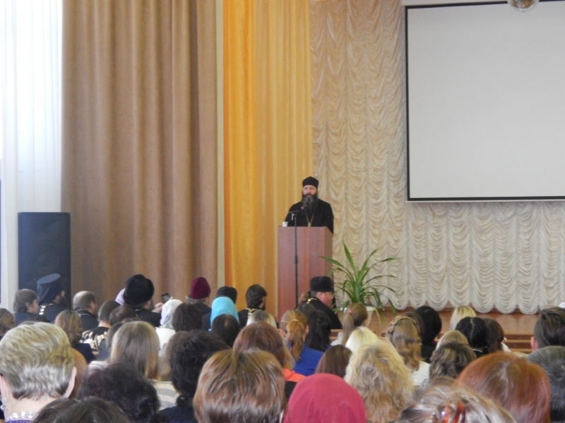 В своём приветственном слове к участникам Каинских образовательных чтений Епископ Феодосий подчеркнул, что «современное общество очень открыто новым веяниям. Но построение нового чаще всего почему-то начинается с разрушения старого, хотя ничего хорошего от разрушения традиций не происходит… Культура, общество, личность – это те аспекты, в которых и проявляются традиции и новации. И здесь важно именно духовно-нравственное воспитание личности, труд над тем, чтобы новации соотносились с традициями, чтобы то и другое было востребовано в работе работников сфер образования и культуры…