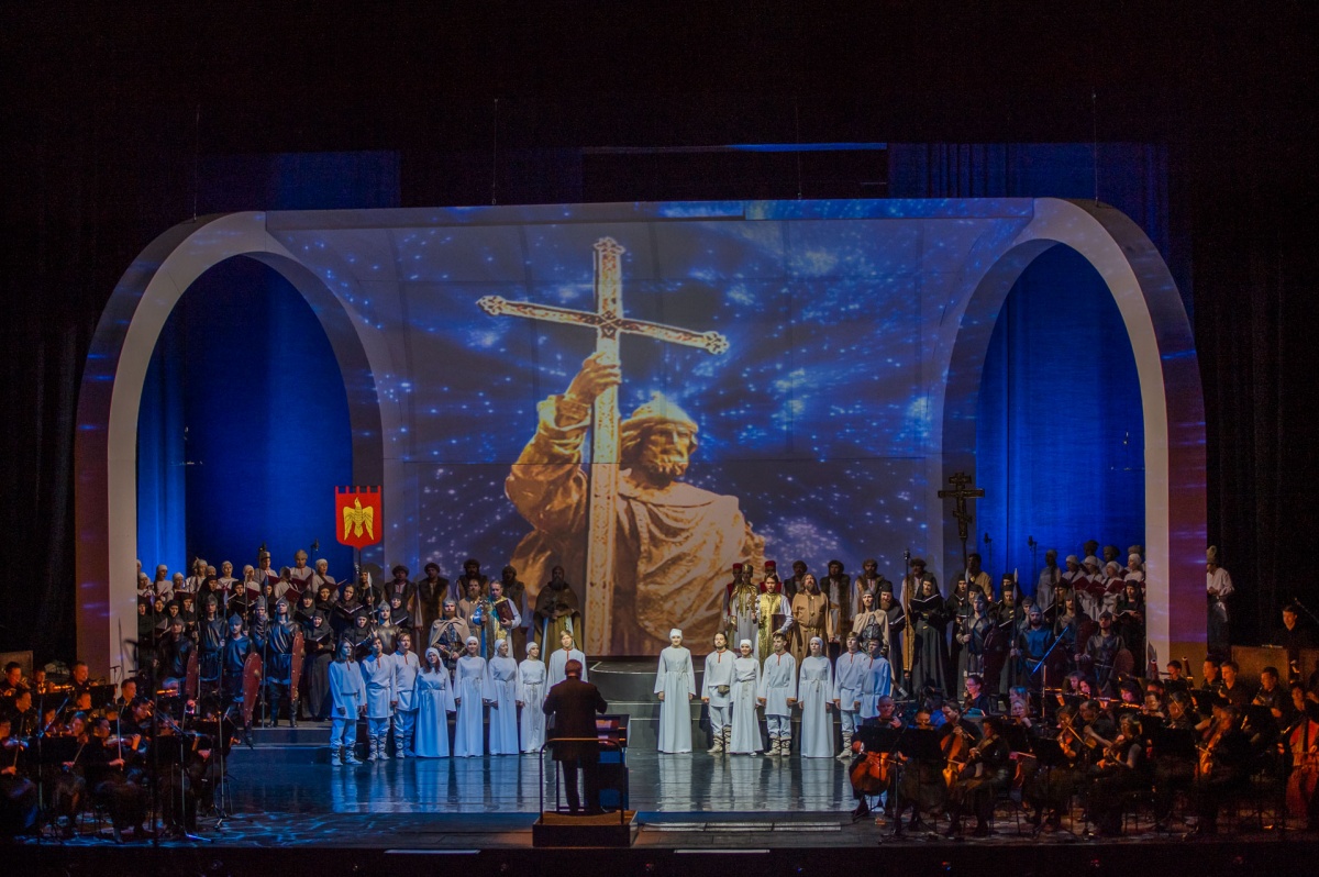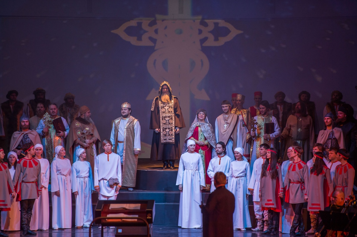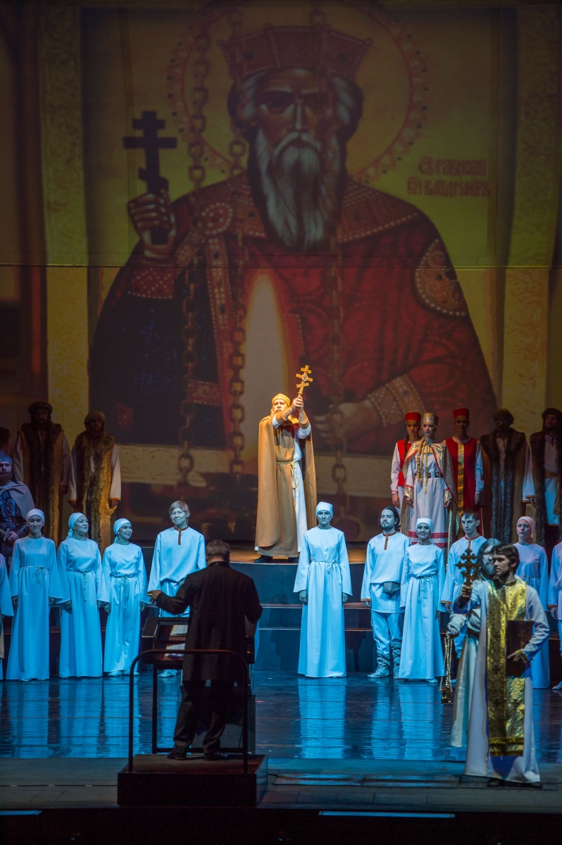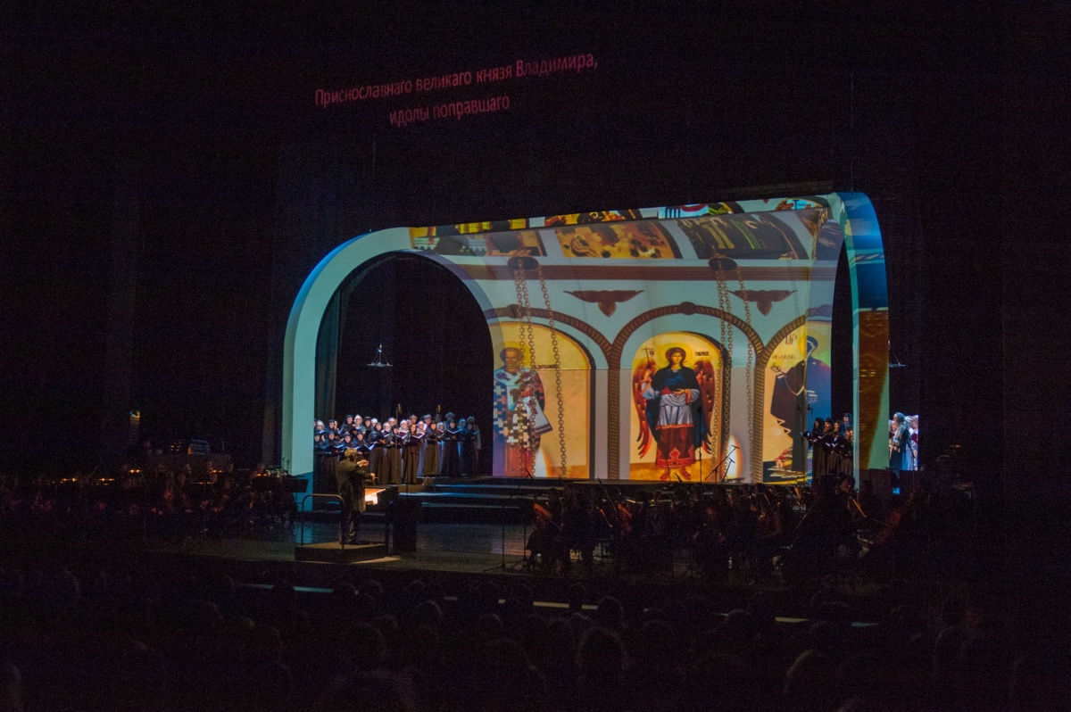 Состоялась премьера оратории "Святой Владимир - Креститель Руси"Оратория на музыку Ираиды Сальниковой посвящена 1000-летию со дня преставления святого равноапостольного князя Владимира и была представлена в исполнении солистов, хора и оркестра Новосибирского государственного академического театра оперы и балета. Перед началом представления зрителей приветствовали Митрополит Новосибирский и Бердский Тихон и Губернатор Новосибирской области В.Ф. Городецкий. Владыка подчеркнул, что День Крещения Руси, который в этом году отмечается с особым торжеством, является церковно-государственным праздником. Митрополит Тихон также зачитал послание Патриарха Московского и всея Руси Кирилла, посвященное 1000-летию святого равноапостольного князя Владимир.