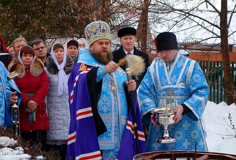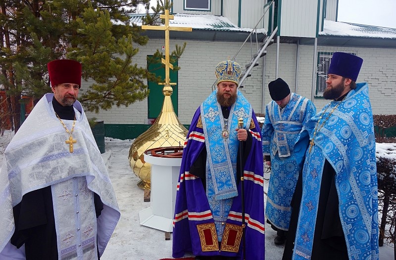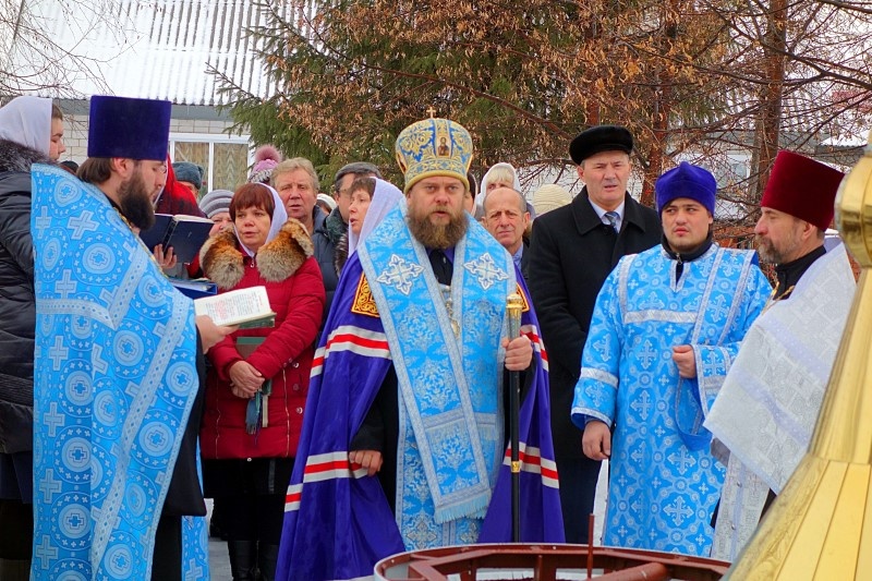 После чина освящения куполов и крестов состоялся торжественный подъем их на здание храма. Это воистину историческое событие в жизни храма, это его обновление! Со словами приветствия выступили епископ Филипп и глава Краснозерского района Баев Александр Викторович.