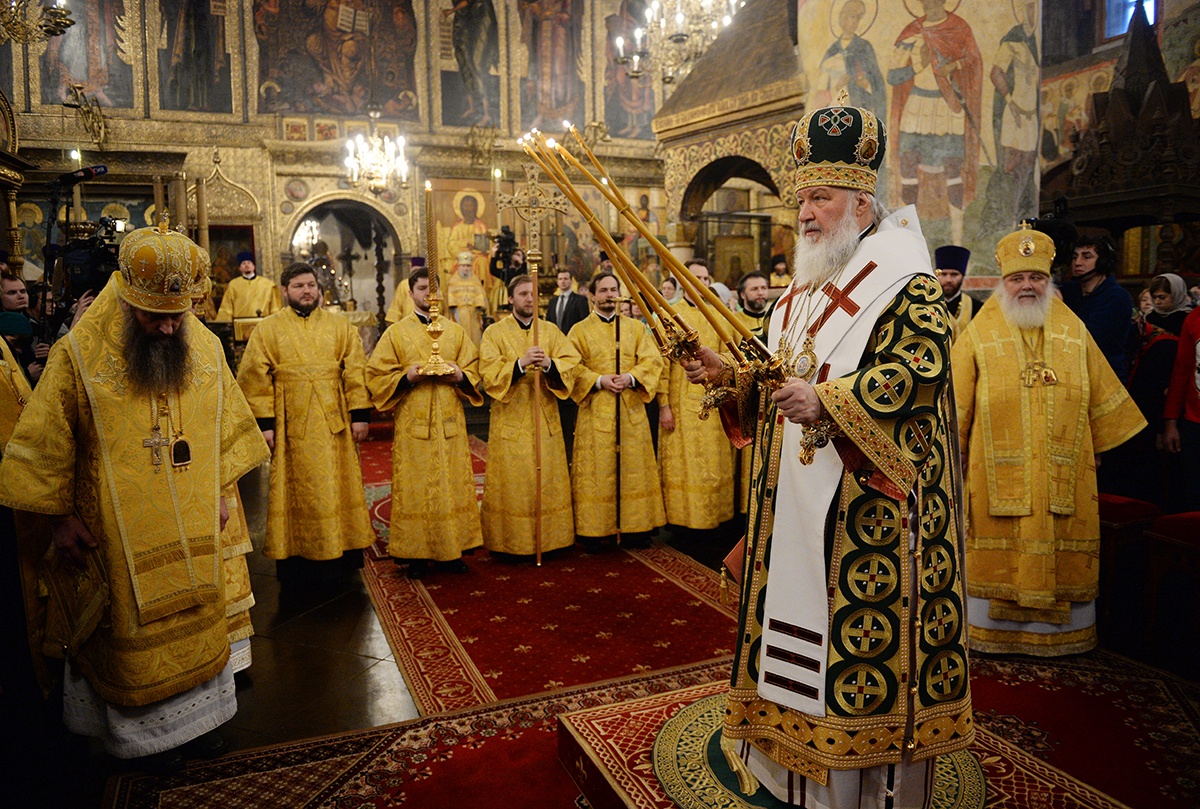 Предстоятель Русской Православной Церкви совершил богослужение в облачении, созданном по образцу облачения, изображенного на древних иконах святителя Петра.