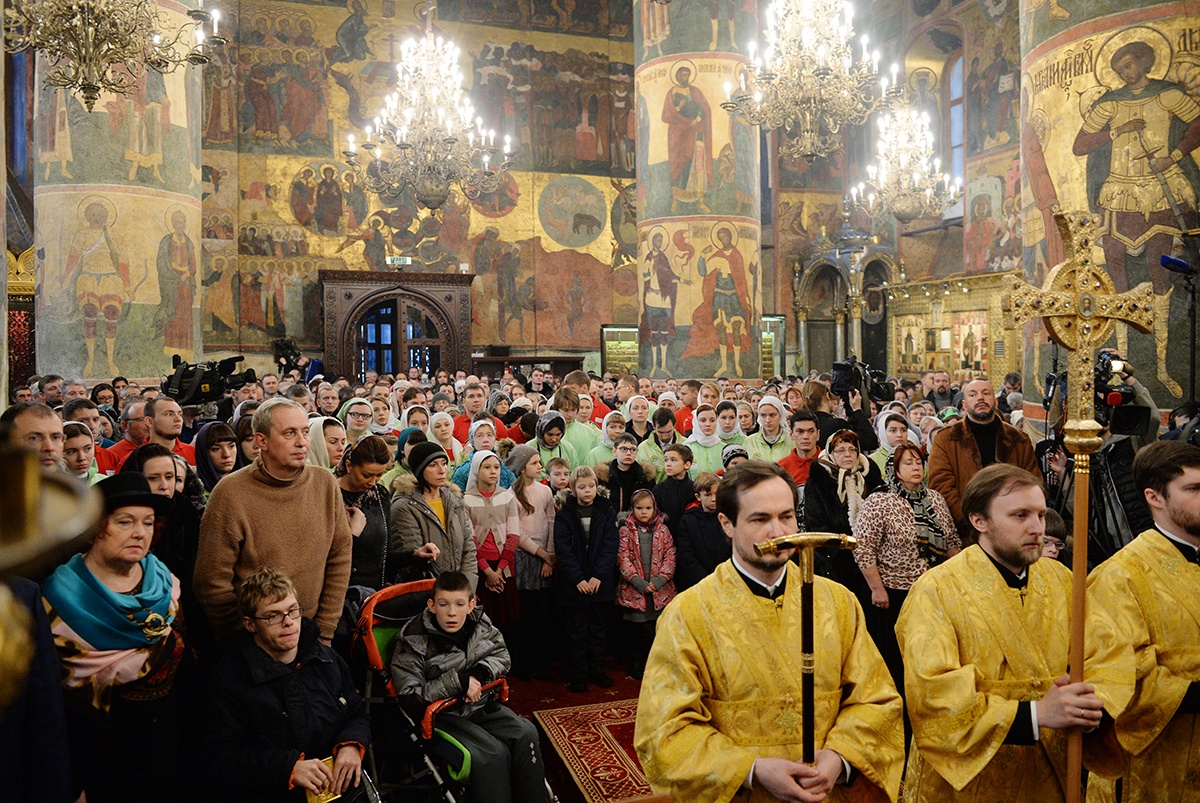 Его Святейшеству сослужили: митрополит Истринский Арсений, первый викарий Патриарха Московского и всея Руси по г. Москве; епископ Петропавловский и Камчатский Артемий; епископ Салехардский и Ново-Уренгойский Николай; епископ Воскресенский Савва, первый заместитель управляющего делами Московской Патриархии, наместник Новоспасского ставропигиального монастыря г. Москвы; епископ Искитимский и Черепановский Лука; епископ Шуйский и Тейковский Никон; протоиерей Владимир Диваков, секретарь Патриарха Московского и всея Руси по г. Москве; члены Епархиального совета г. Москвы, столичное духовенство.