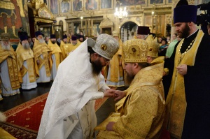За Литургией Святейший Владыка возглавил хиротонию архимандрита Матфея (Копылова) во епископа Анадырского и Чукотского.