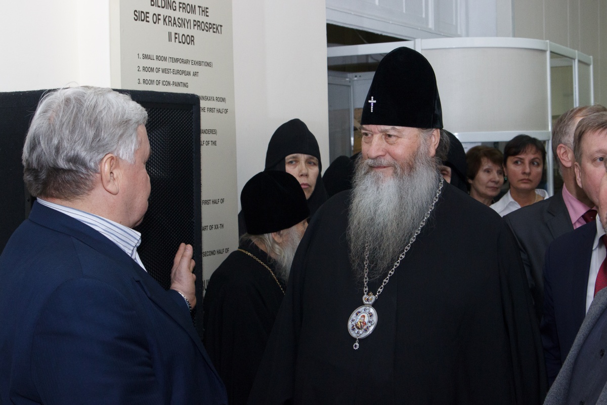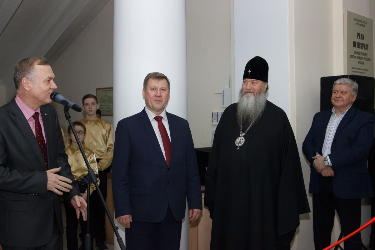 Новосибирцев тепло приветствовали присутствующие на открытии выставки Митрополит Новосибирский и Бердский Тихон и директор Новосибирского государственного художественного музея Сергей Михайлович Дубровин. Детский хор Вознесенского кафедрального собора под управлением Татьяны Егоровой исполнил для посетителей несколько музыкальных произведений.