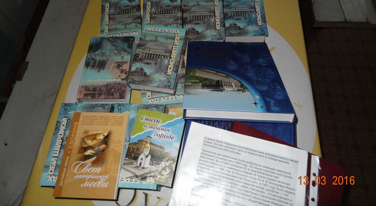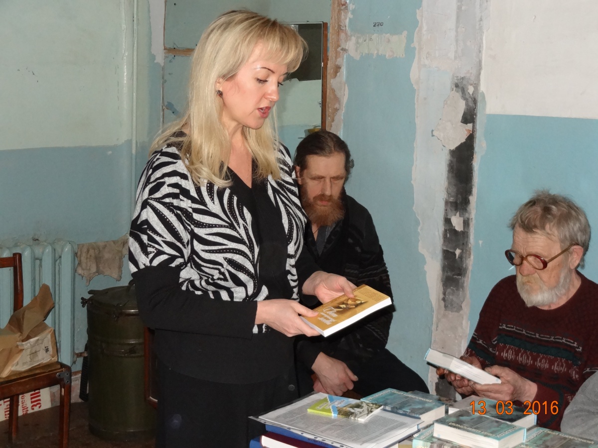 Путешествие в прошлое с жителями центра совершила – руководитель областной организации «Сибирская книга», член Союза журналистов России Наталья Пендюрина (Капина). Участники встречи, имели возможность познакомиться с новыми произведениями сибирских поэтов и писателей. А так же с работами участников литературных конкурсов и Народных альманахов . Наталья отметила, что когда мы говорим о Дне православной книги, как о празднике православной литературы, мы вкладываем смысл, выходящий за пределы формальных жанровых границ, и русская классическая литература, от корней православная и включающая в себя все жанры, является тому ярчайшим примером. И мы можем смело сказать: День русской литературы – это День православной книги.