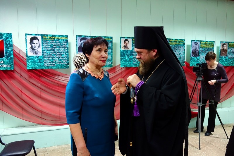 На ее открытии присутствовал Его Преосвященство Филипп, епископ Карасукский и Ордынский, представители администрации Карасукского района, совета ветеранов, школьники и дети из военно-патриотических клубов г. Карасука.