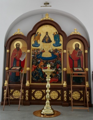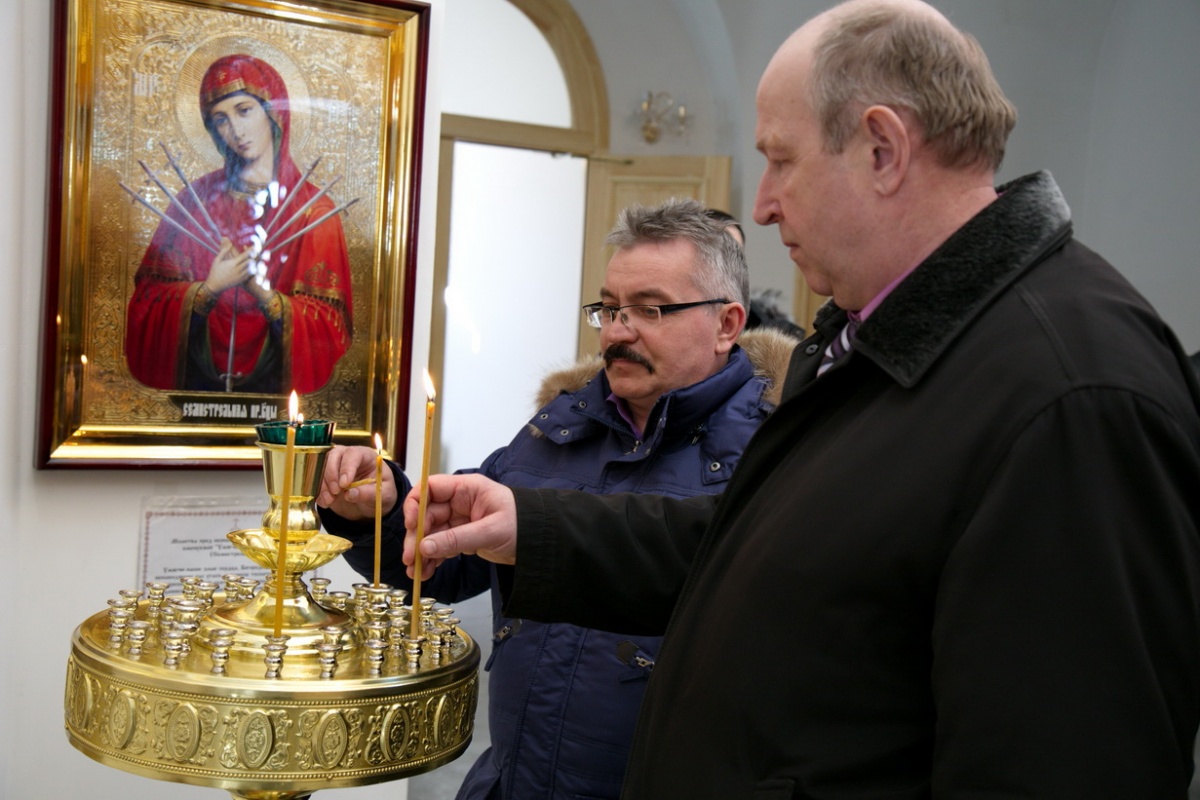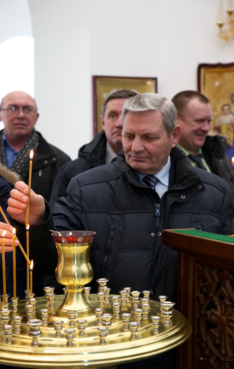В первую очередь собравшиеся осмотрели новопостроенный храм в честь Новомучеников и исповедников Церкви Русской, где поставили свечи и сфотографировались.